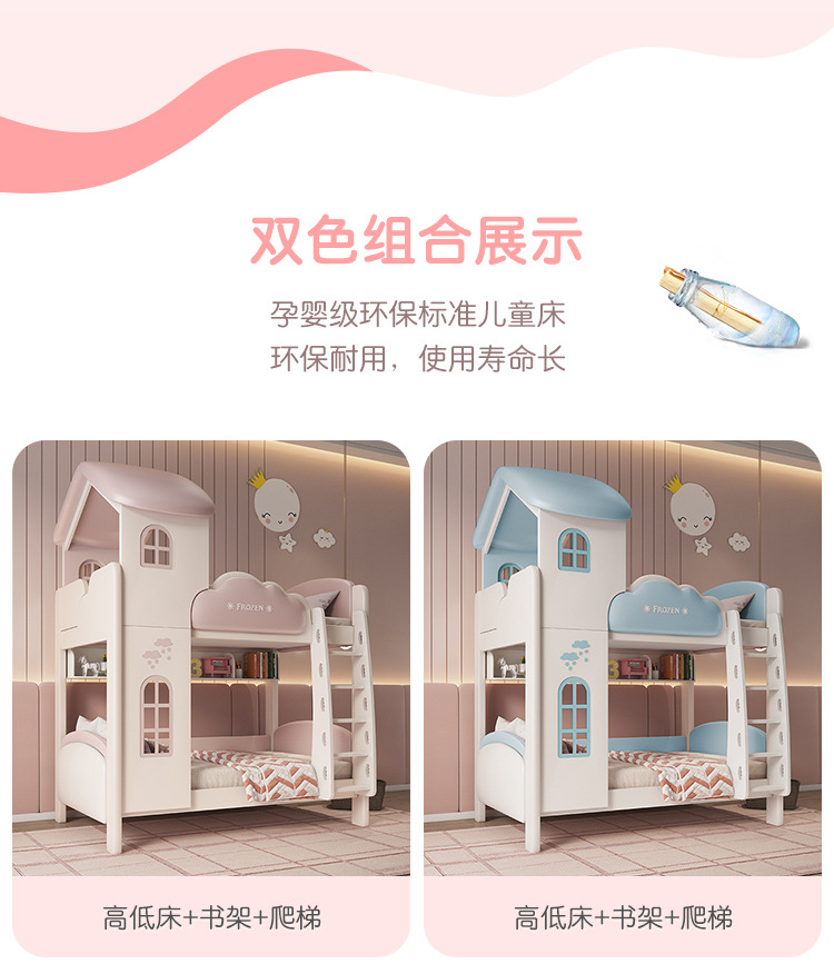 어린이 침대 위아래로 같은 폭 벙크 침대 2 층 소녀의 공주 침대 어머니의 침대 작은 아파트 성 높고 낮은 침대 소녀의 침대