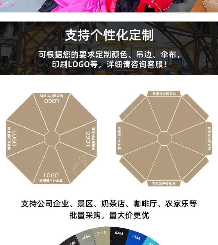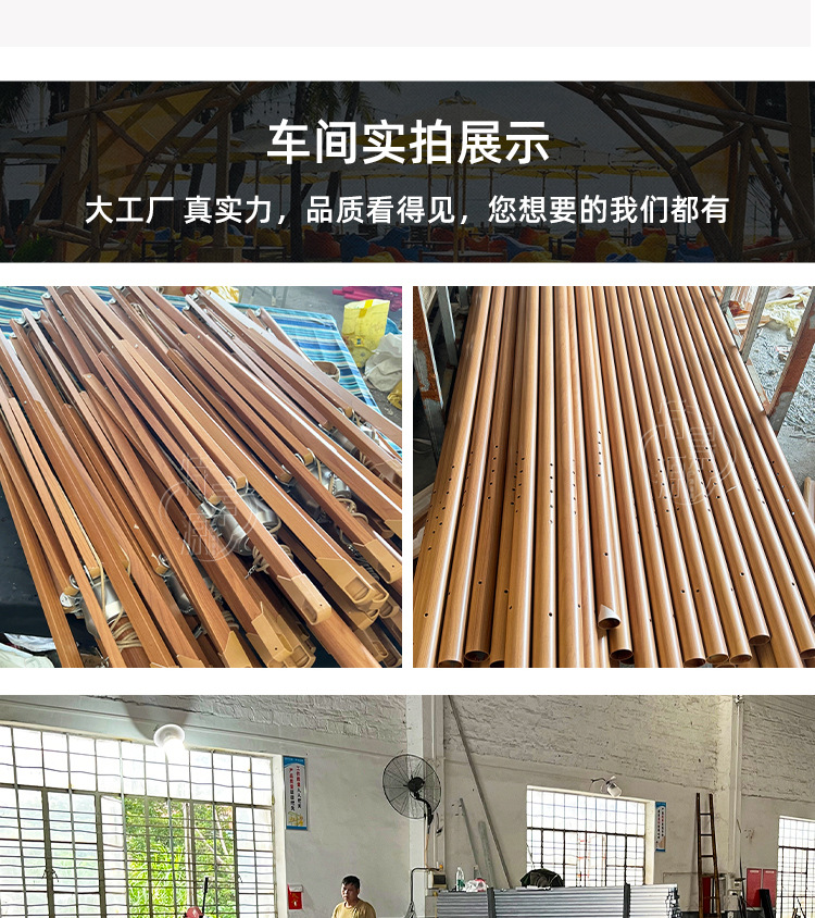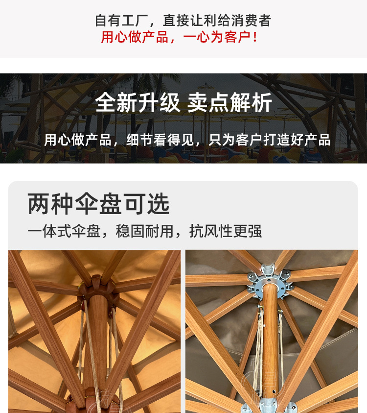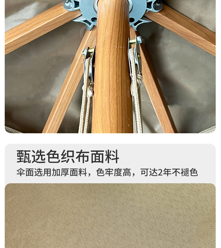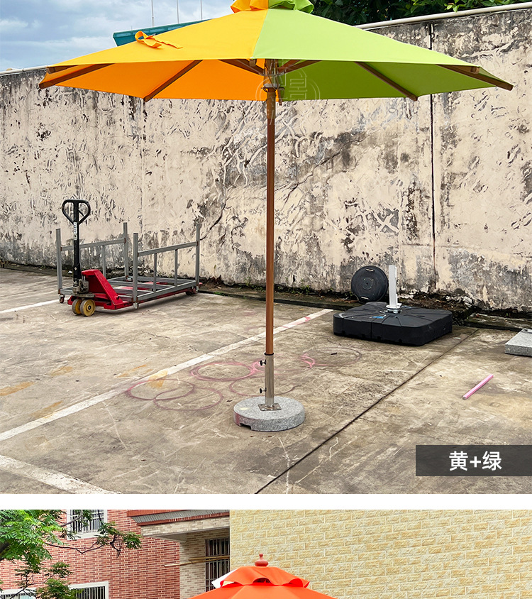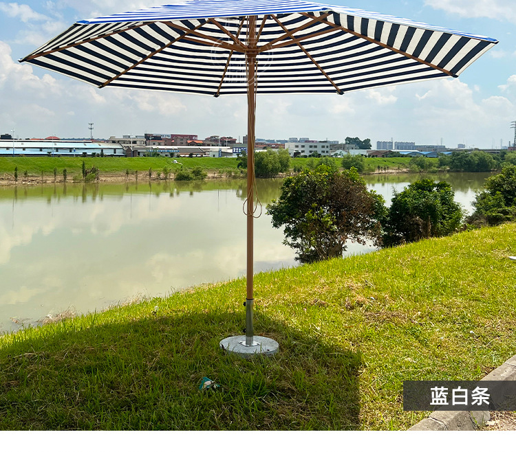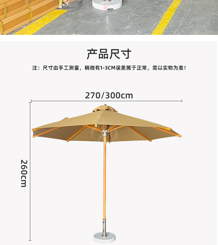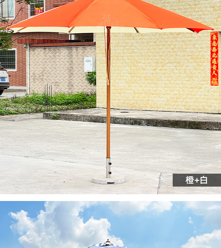 야외용 차양 알루미늄 합금 이중 휠 우드 그레인 중간 기둥 우산, 고급 상업 거리 커피숍용, 방풍 비치 우산스토어 가기