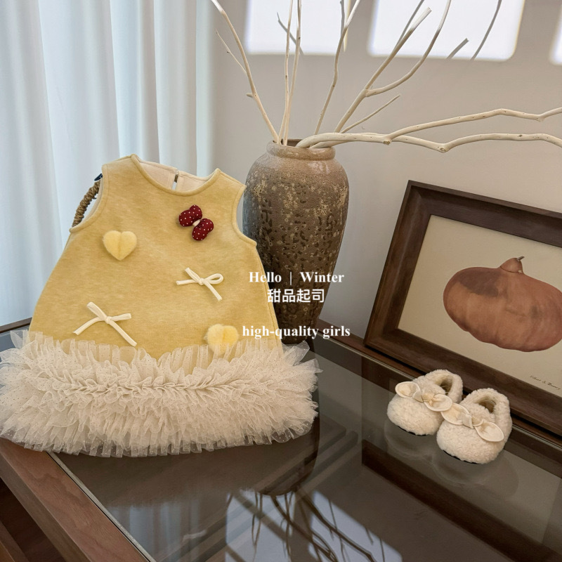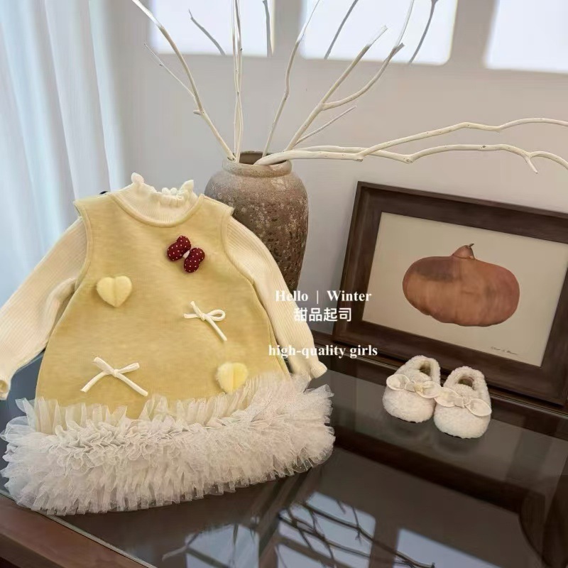 여아 만화 드레스 가을 겨울 반하이넥 스웨터 레이스 조끼 두꺼운 플리스 공주 드레스 작은 프랑스 스타일스토어 가기