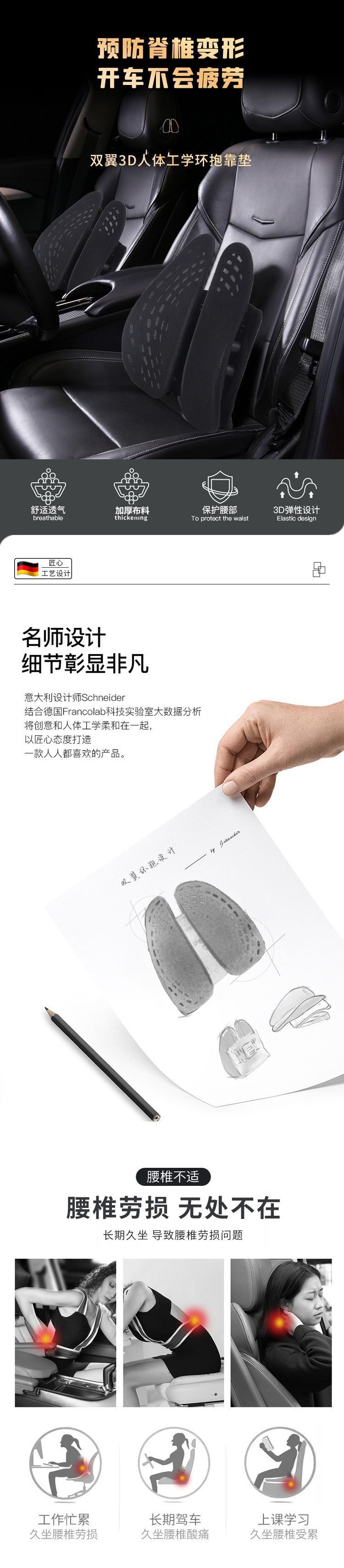 HNXM71 허리 패드 인체 공학적 허리 쿠션 사무실 의자 뒤 좌식 허리 보호 통기성 좌석 허리 베개 자동차스토어 가기