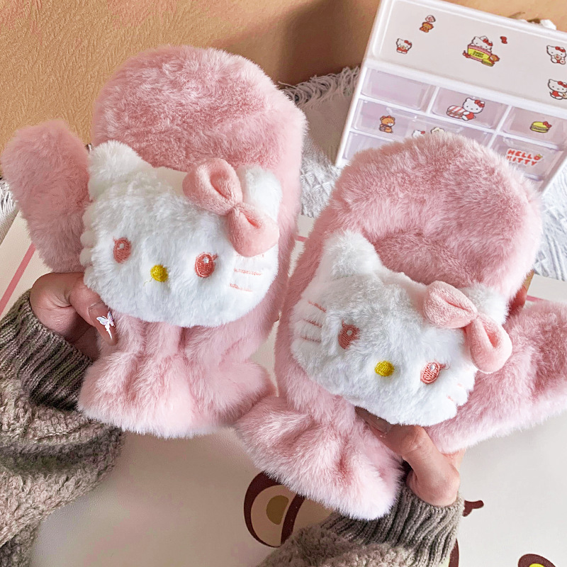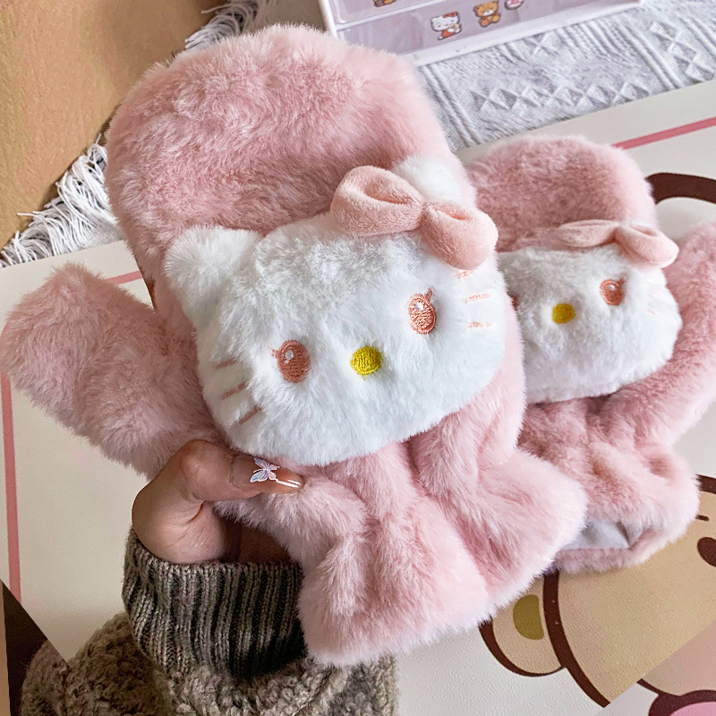 헬로 키티 장갑 여성의 겨울 따뜻한 장갑 귀여운 승마 한국 스타일 만화 기모 두꺼운 학생 선물스토어 가기