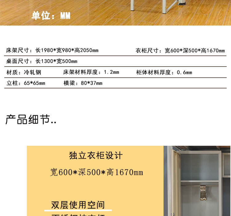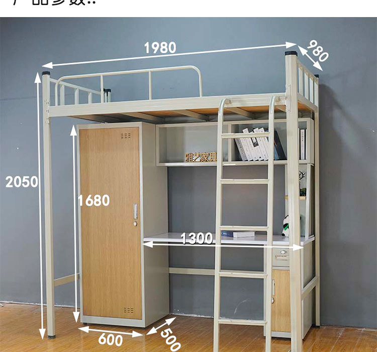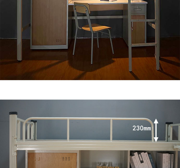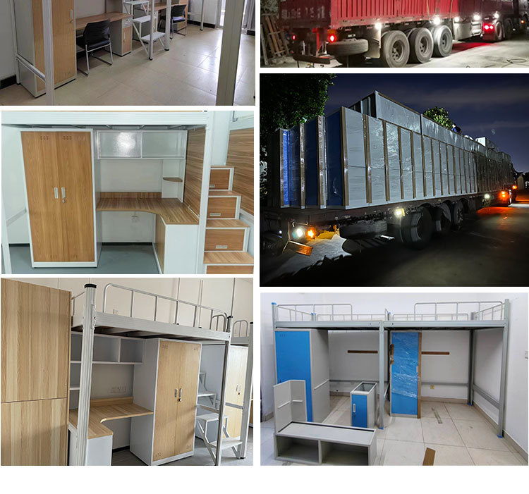 아파트 침대 대학 학생 기숙사 침대 낮은 테이블 낮은 캐비닛 조합 목재 곡물 전송 높고 낮은 철 침대 직원 높은 침대