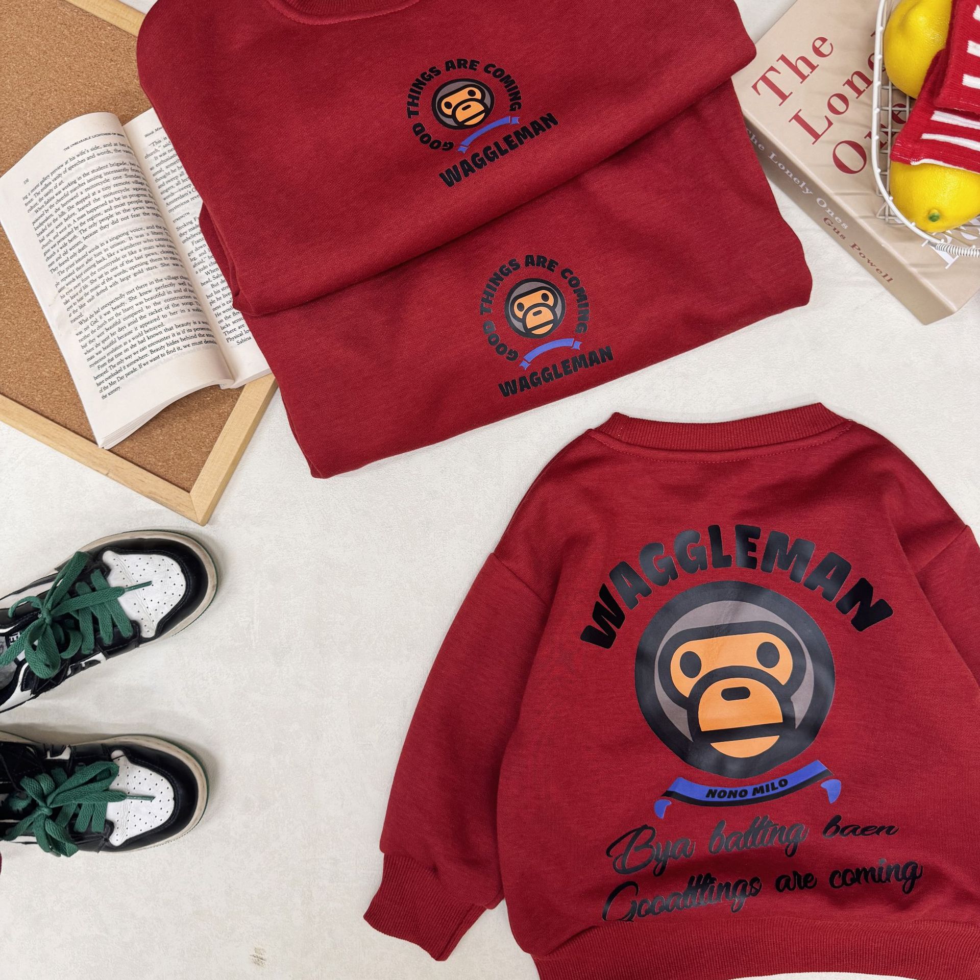 새해 어린이 기모 스웨트셔츠 아기 트렌디한 신년 의상 소년 빨간 스웨트셔츠 한국 크로스 재고스토어 가기