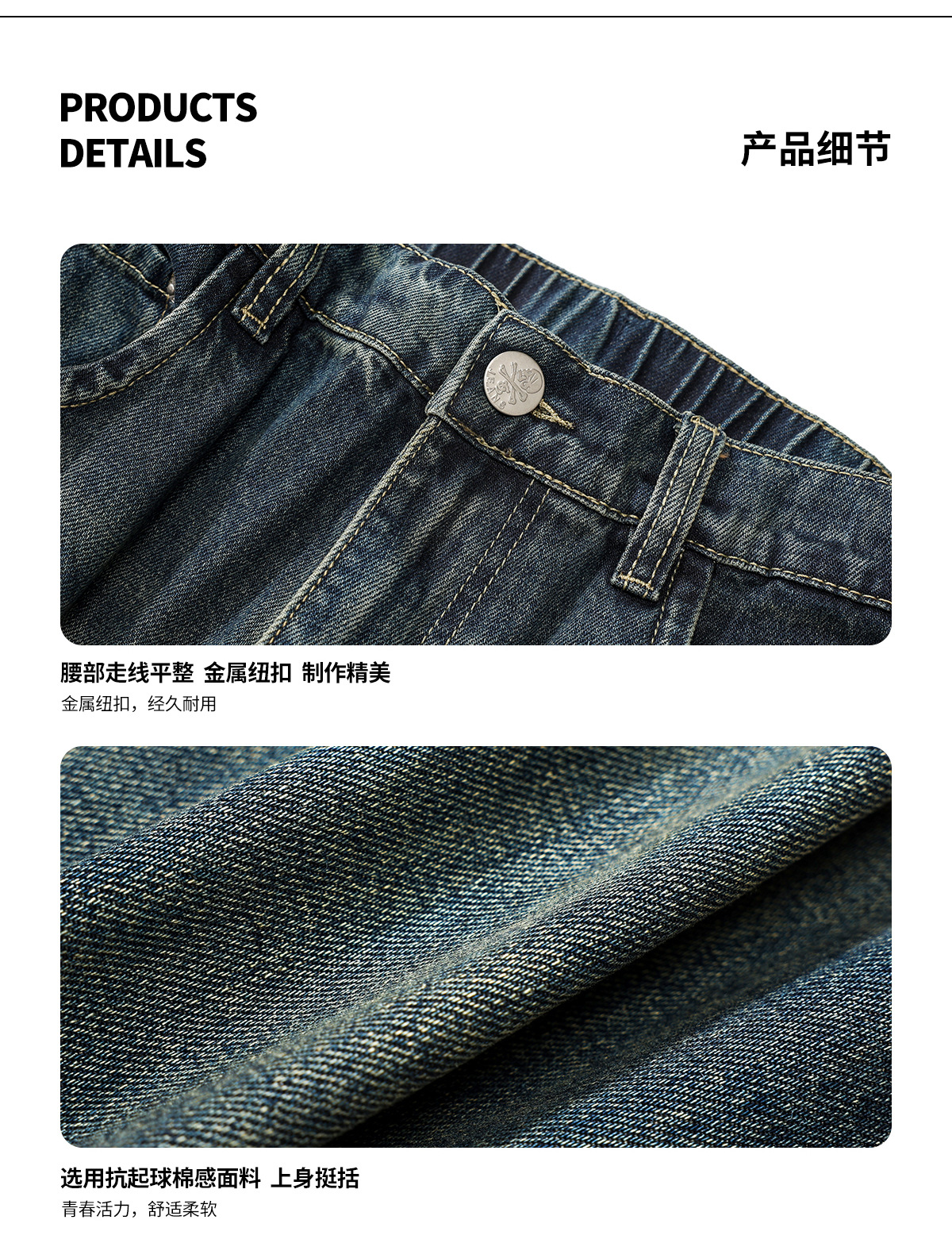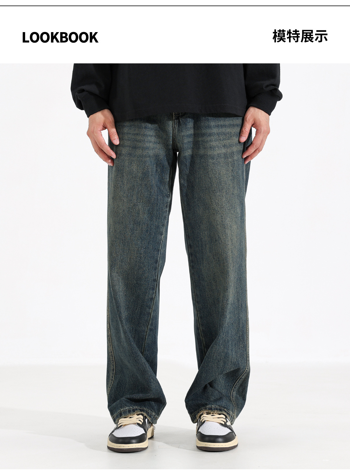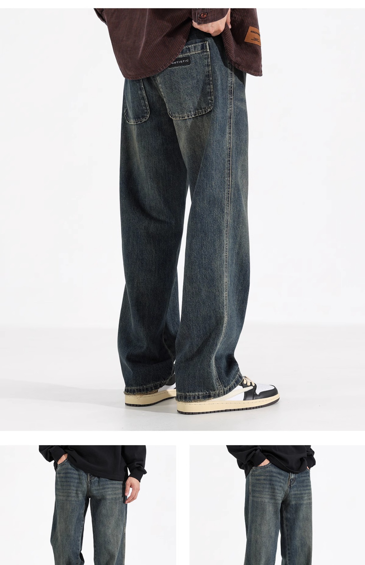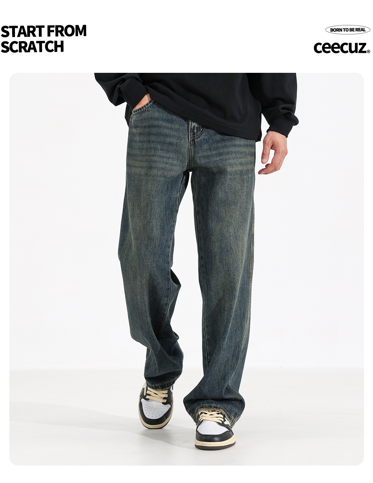 Ceecuz 미국 복고풍 클린 핏 루즈 스트레이트 청바지 남성 봄과 가을 새로운 넓은 다리 캐주얼 바지스토어 가기