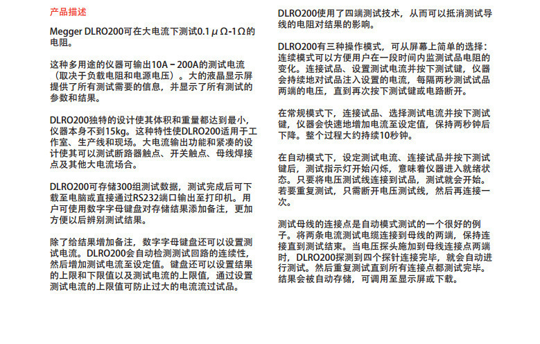 MEGGER DLRO200 MEG 디지털 마이크로 옴 미터 DLRO600 낮은 저항 미터 MOM2스토어 가기