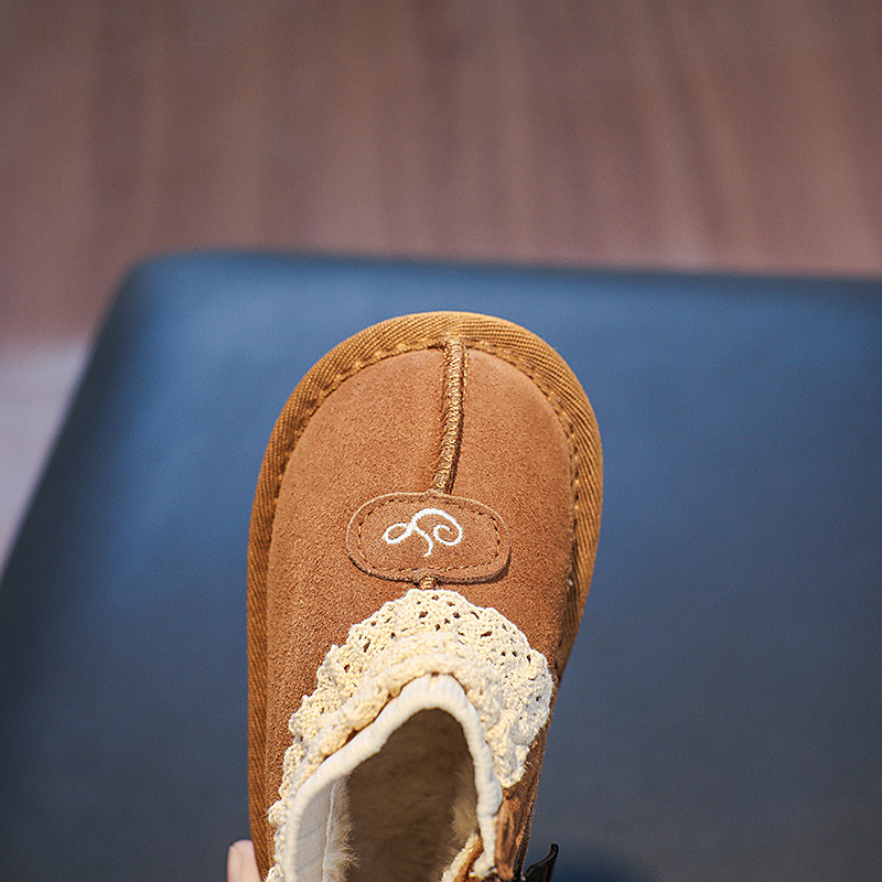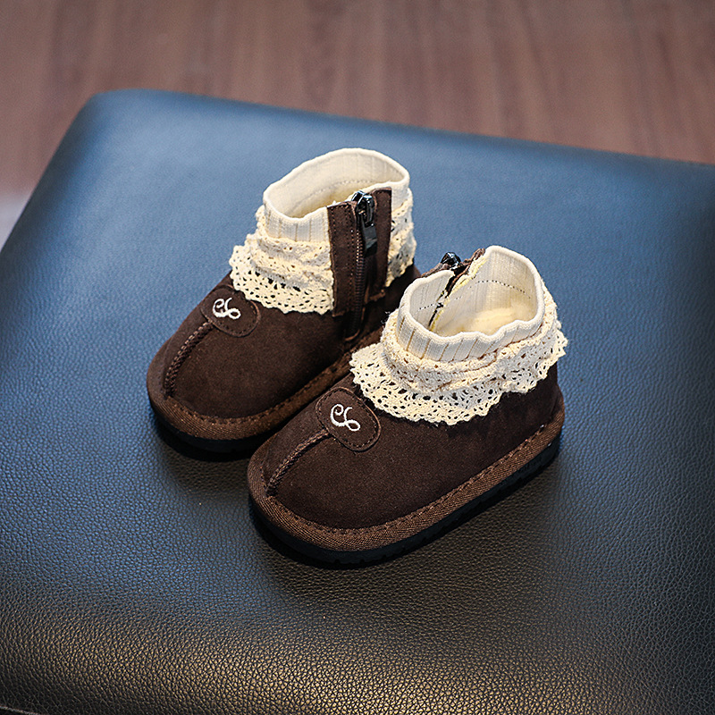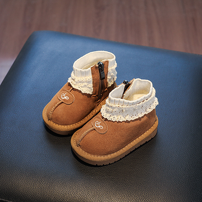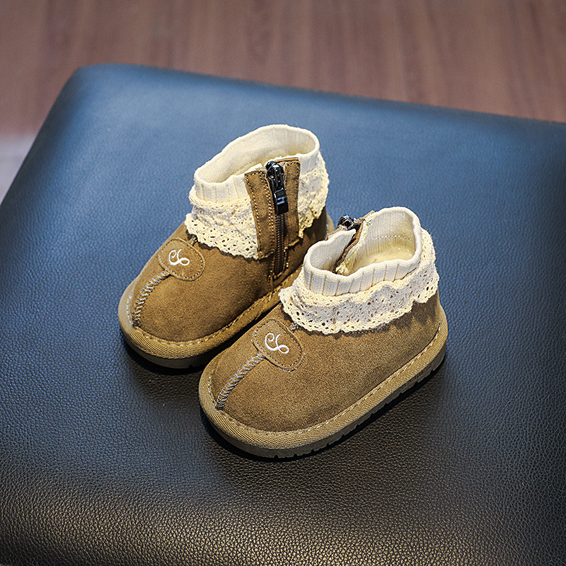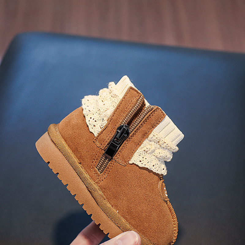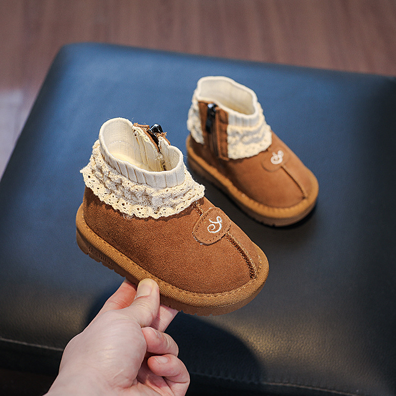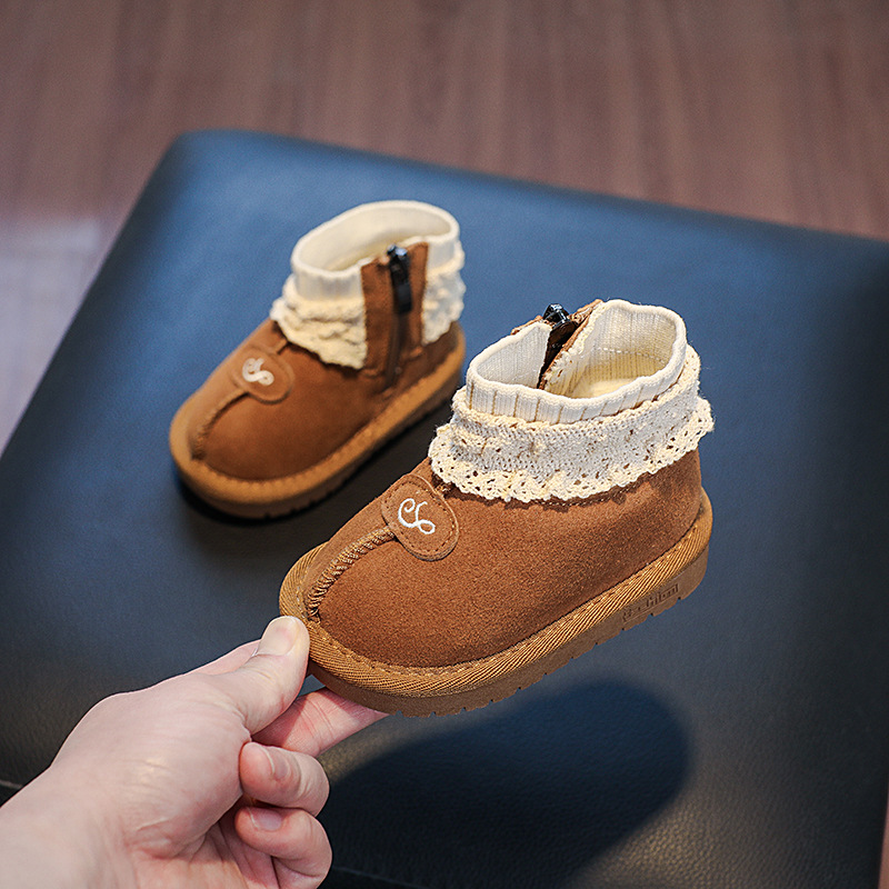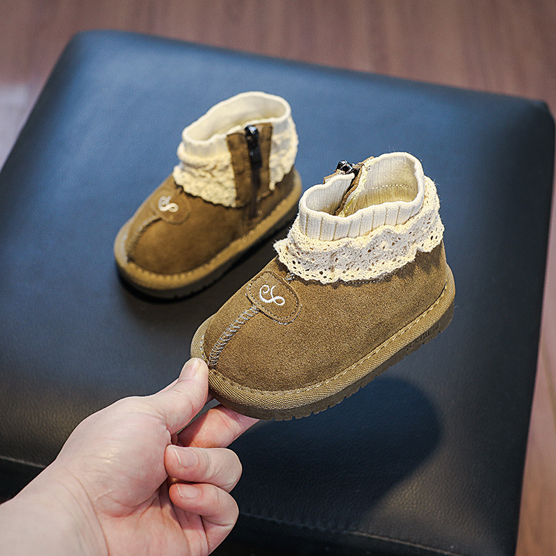 겨울 정품 가죽 아기의 스노우 부츠 소년 사이드 지퍼 레이스 따뜻한 부츠 소녀의 편안한 부드러운 발바닥 가짜 면 신발
