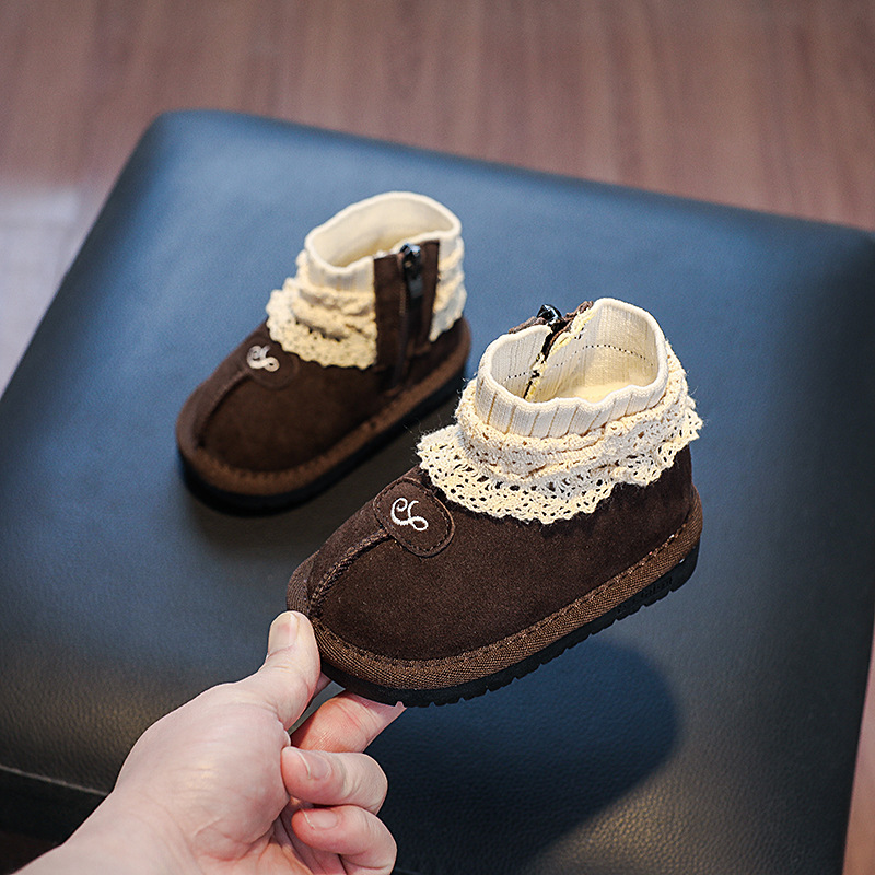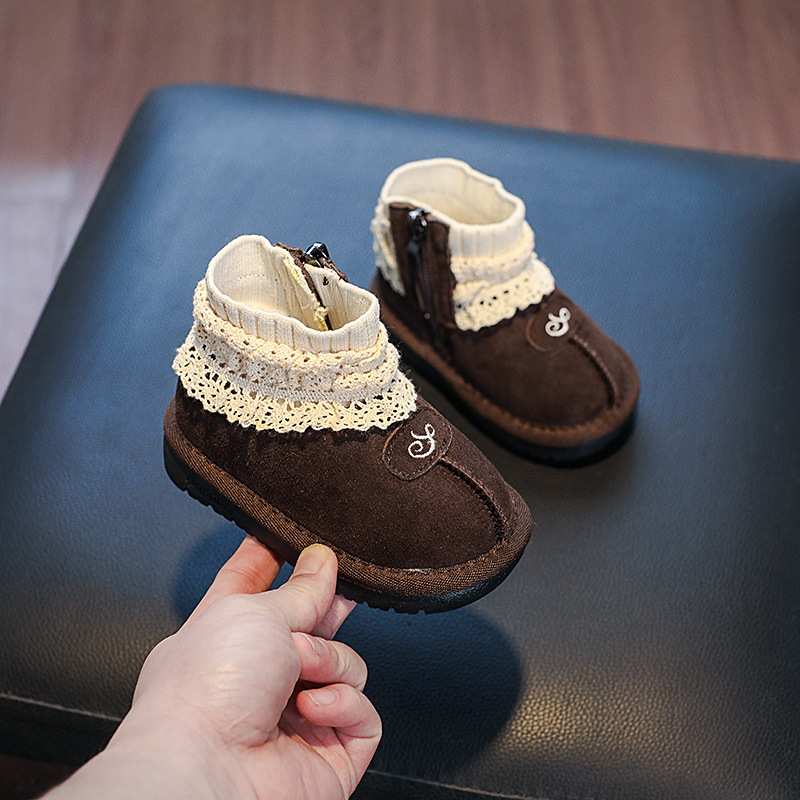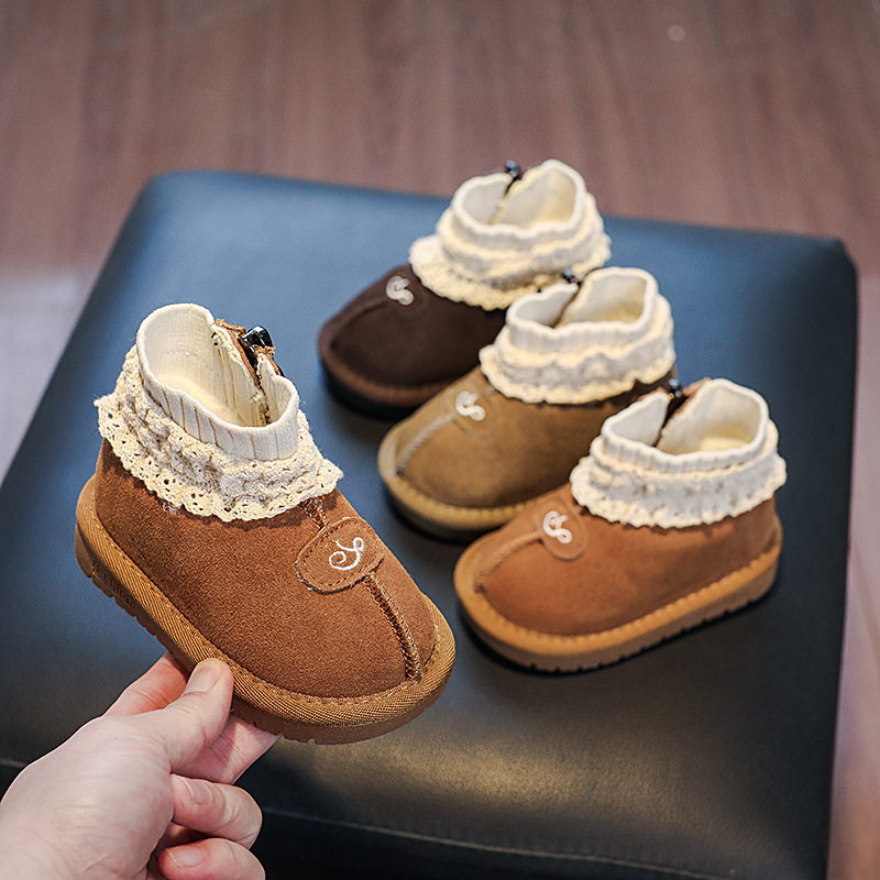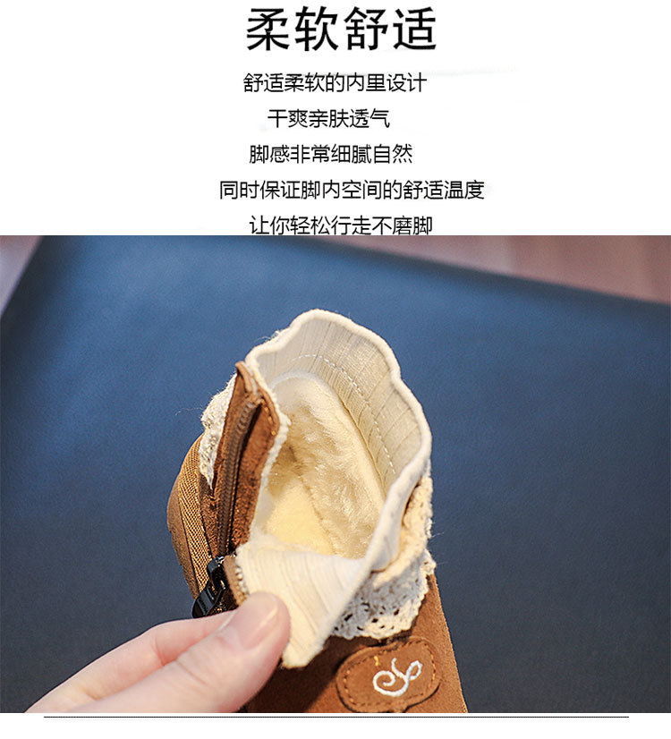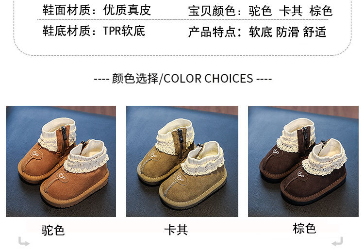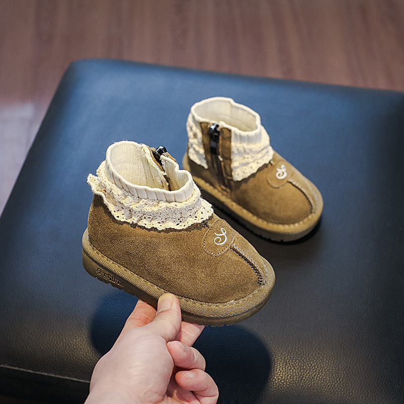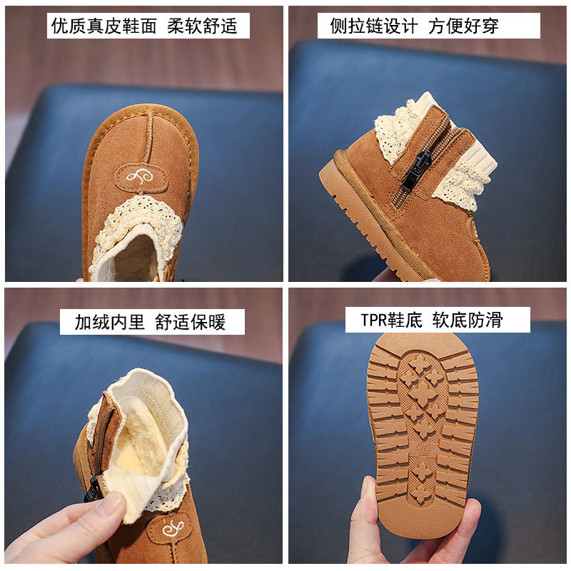 겨울 정품 가죽 아기의 스노우 부츠 소년 사이드 지퍼 레이스 따뜻한 부츠 소녀의 편안한 부드러운 발바닥 가짜 면 신발스토어 가기