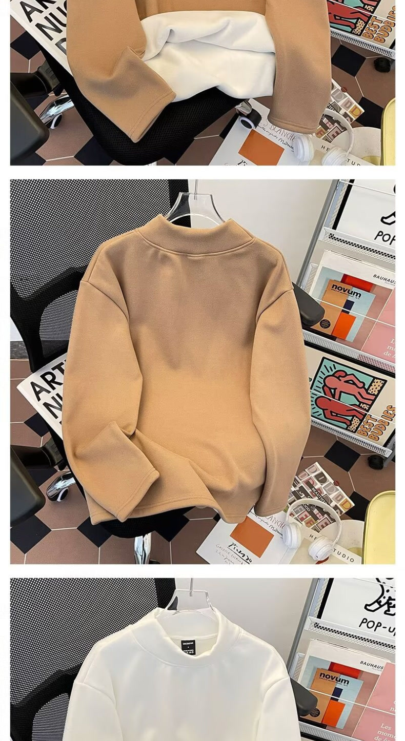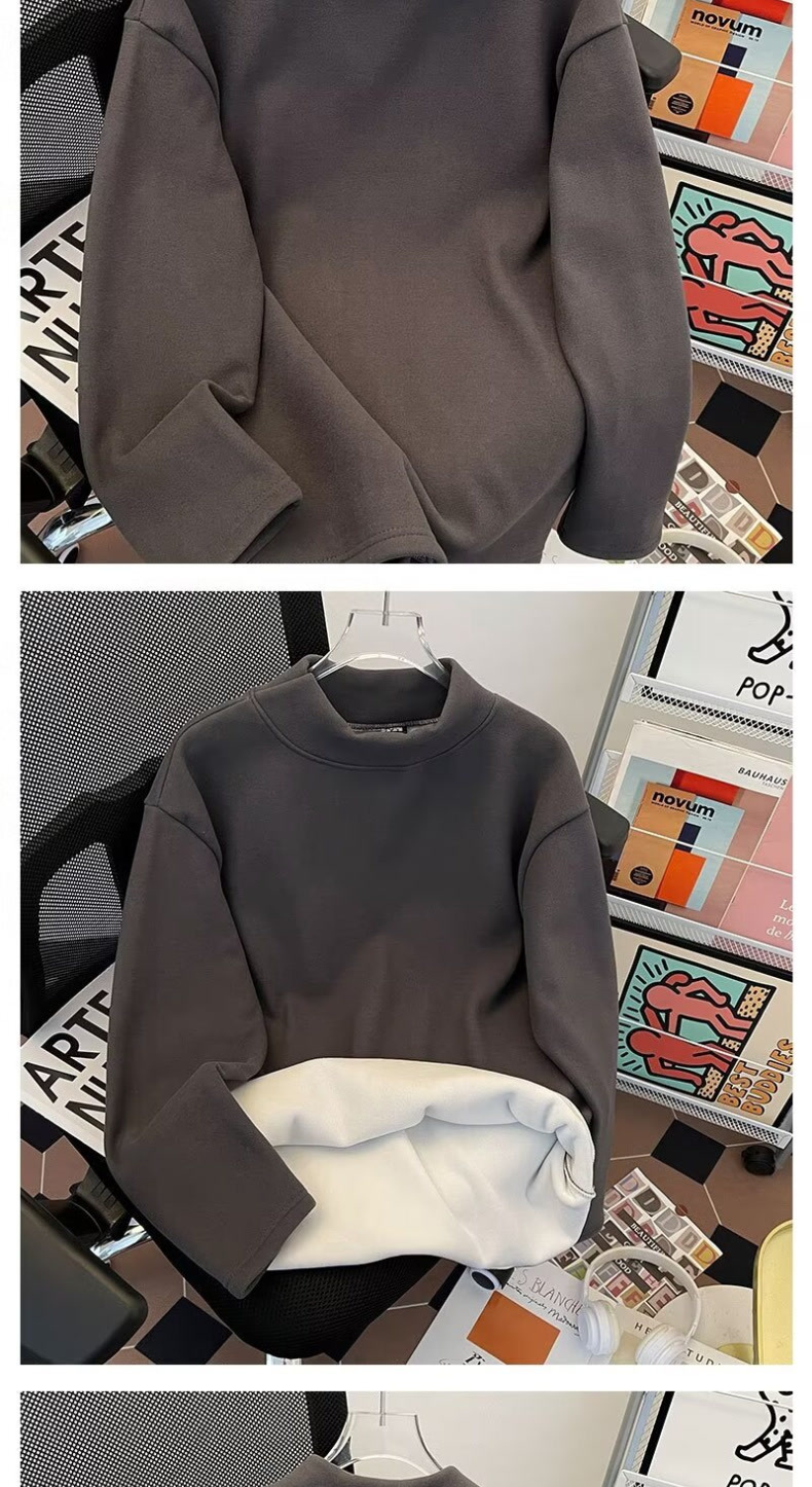 남자 양털베이스 셔츠 남자의 가을과 겨울 반 높이 칼라 겨울 스웨터 솔리드 컬러 따뜻한 양면 양털 긴팔 티셔츠스토어 가기