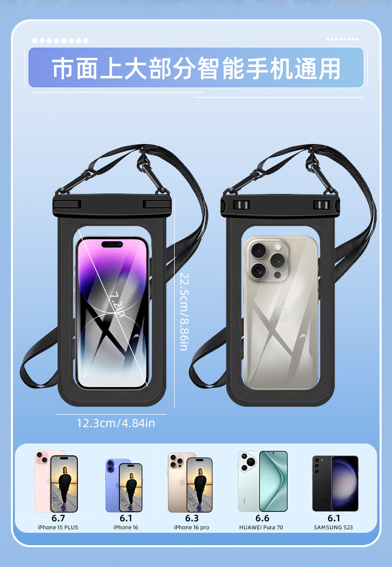 크로스 국경 새로운 PVC 휴대 전화 방수 가방 7.2 인치 투명 더블 후크 야외 해변 수영 다이빙 방수 케이스