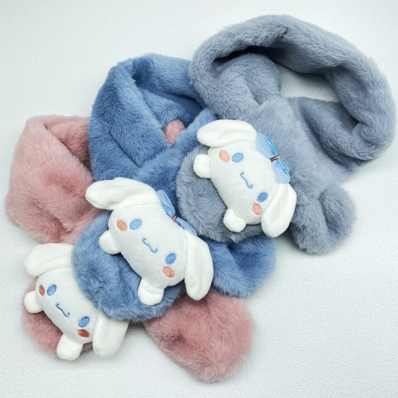 어린이 봉제 스카프 슈퍼 귀여운 만화 산리오 아기 스카프 두꺼운 모조 토끼 모피 크로스 스카프 도매스토어 가기