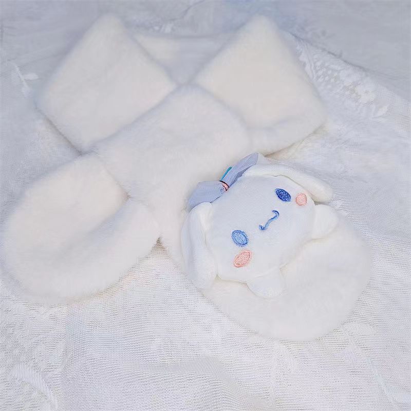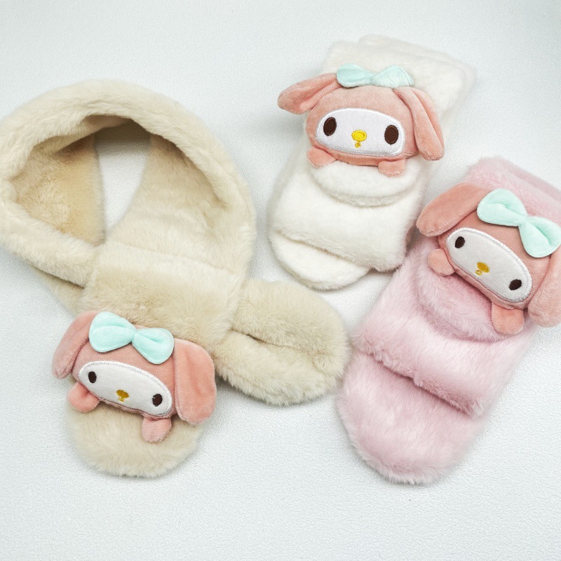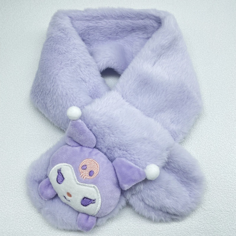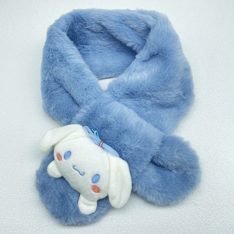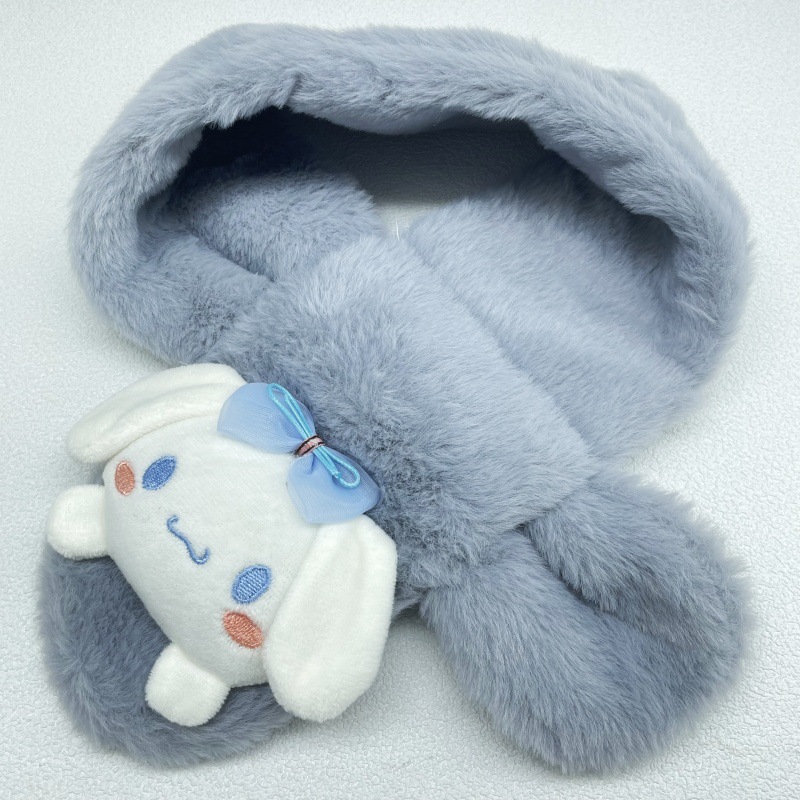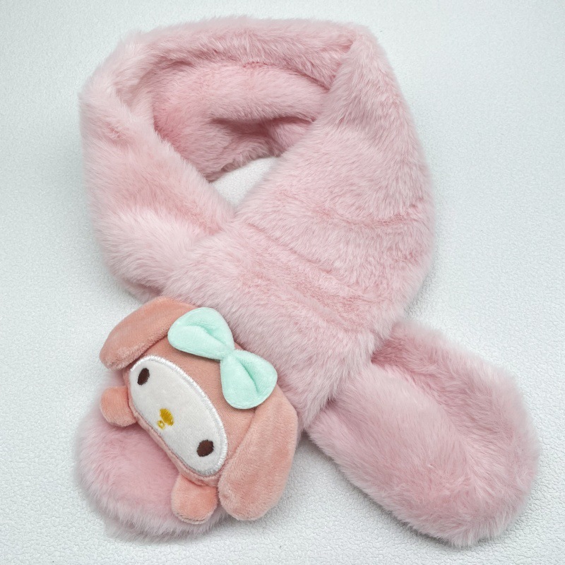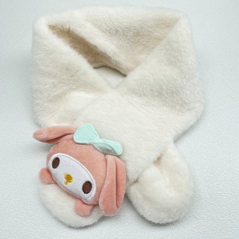 어린이 봉제 스카프 슈퍼 귀여운 만화 산리오 아기 스카프 두꺼운 모조 토끼 모피 크로스 스카프 도매