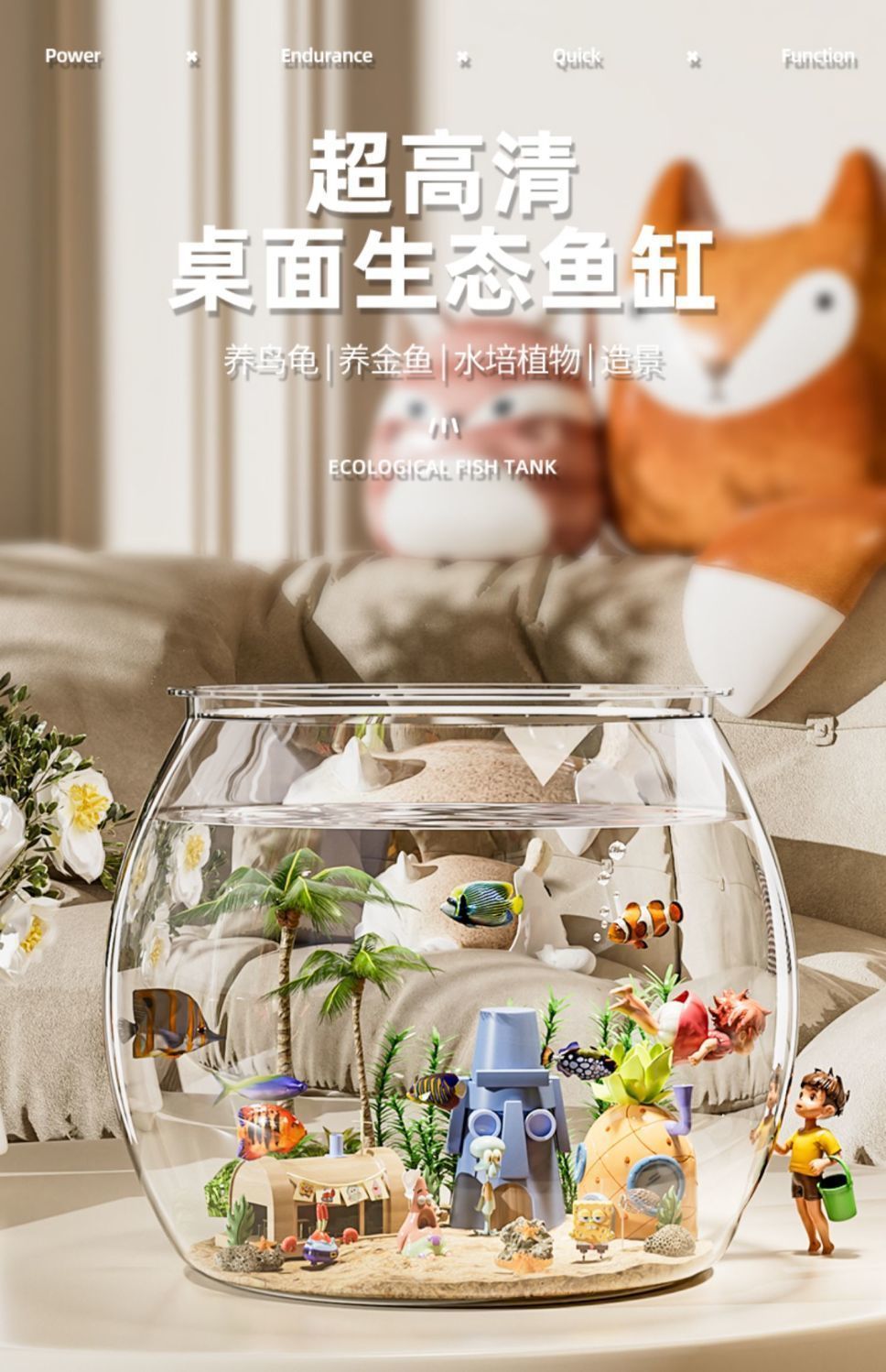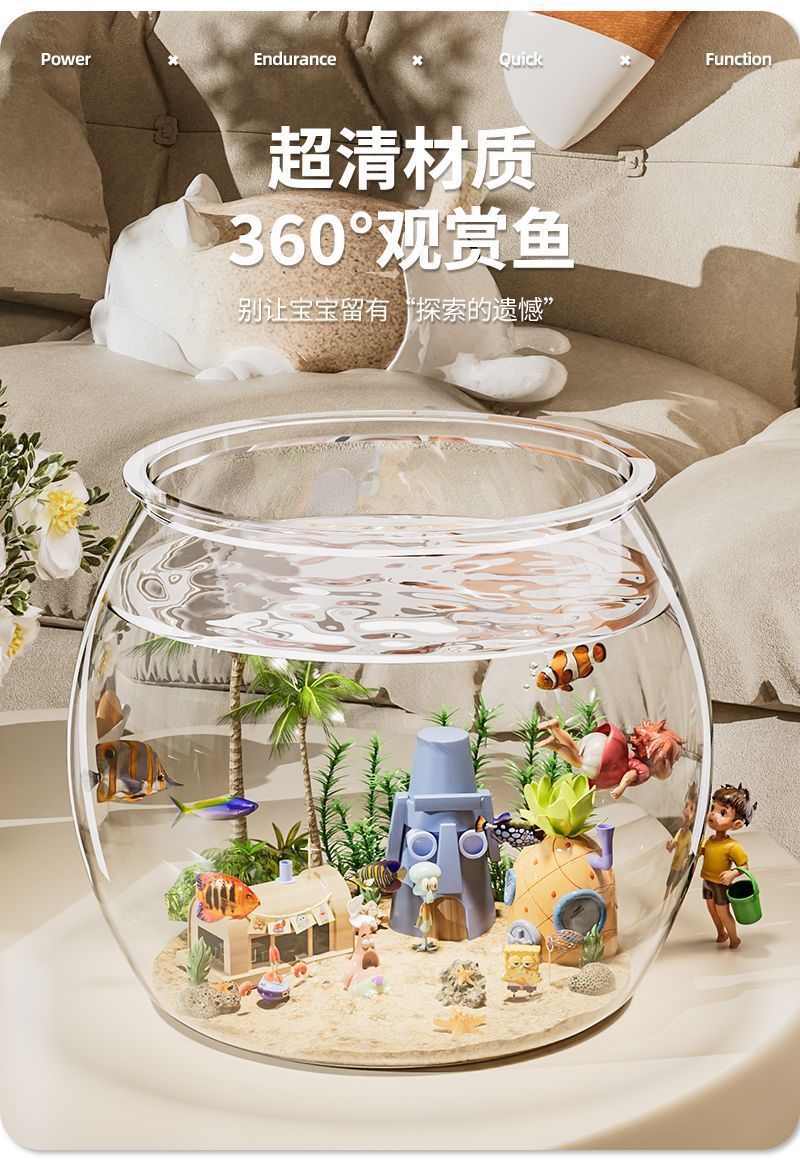 투명 플라스틱 모조 유리 둥근 낙하 방지 작은 물고기 탱크 일체형 거실 작은 장식용 데스크탑 미니 물고기 탱크