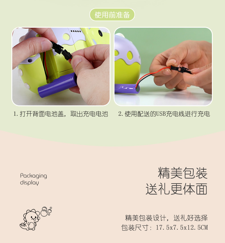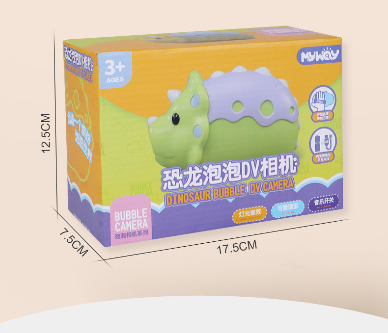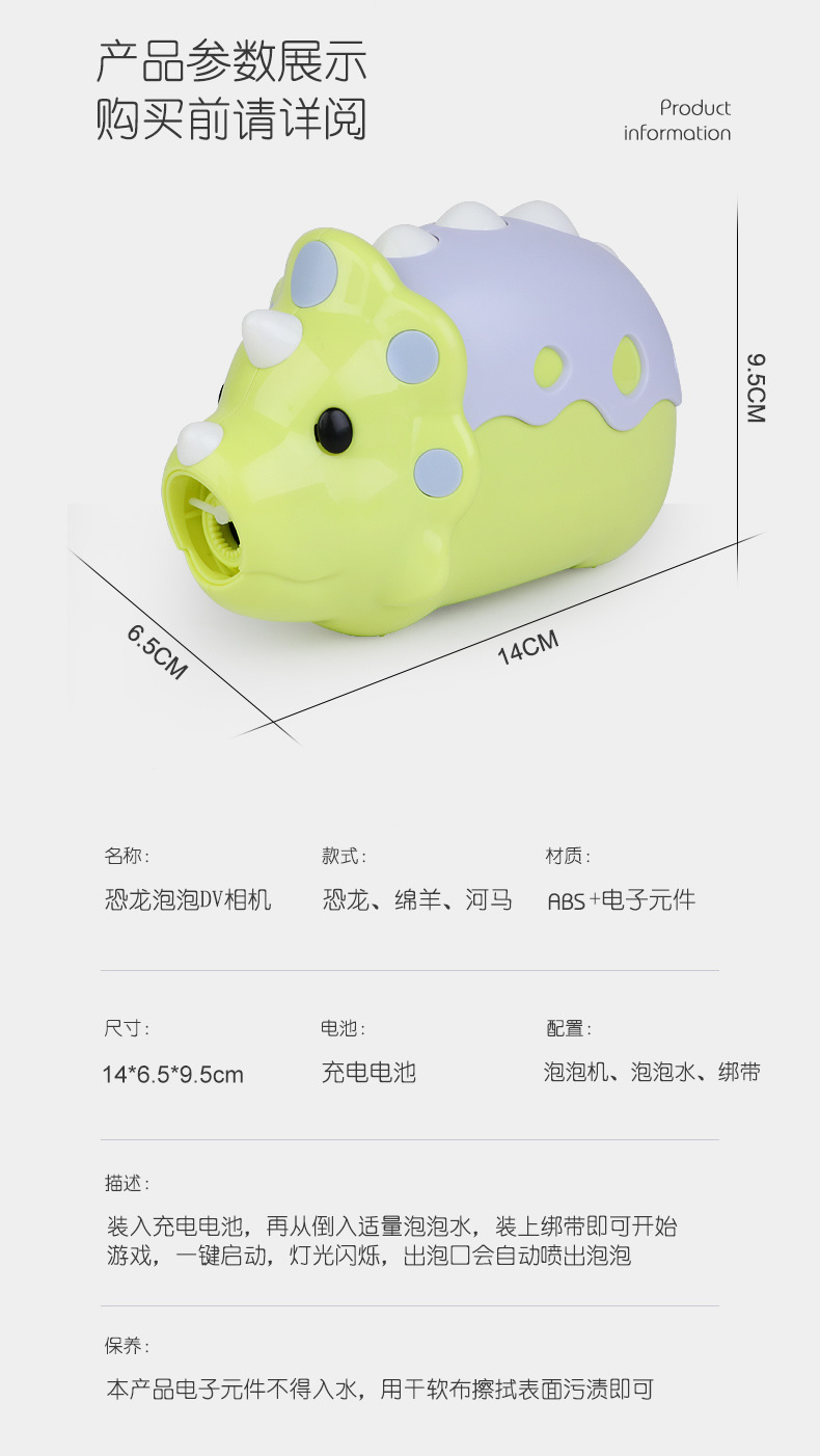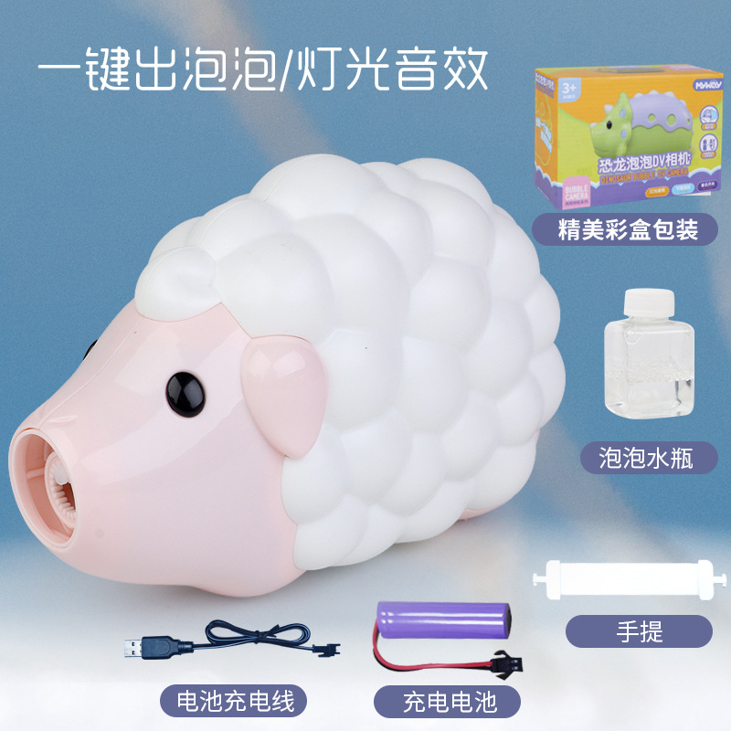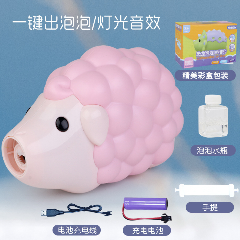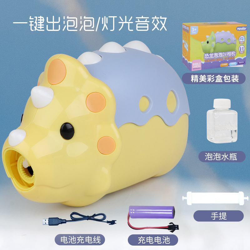 인기있는 동일한 공룡 DV 카메라 소녀 심장 자동 거품 기계 충전 버전 소리와 가벼운 거품 총 어린이 장난감스토어 가기