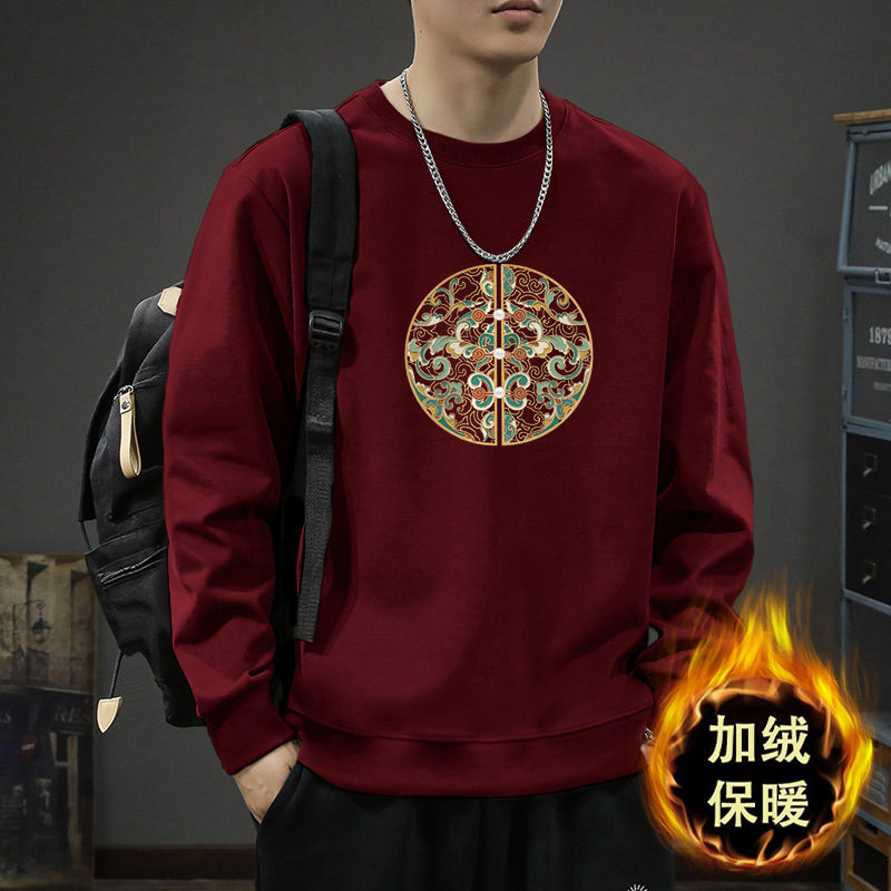 • 버건디 라운드넥 스웨트셔츠 플러스 플리스 스타일-2220【GL】