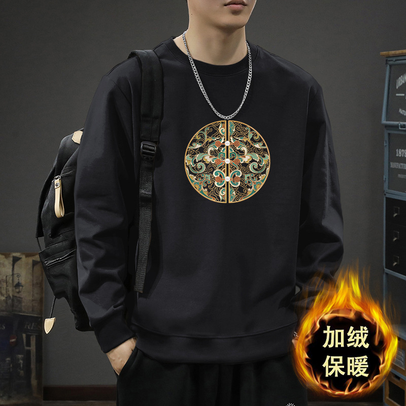 • 블랙 라운드넥 스웨트셔츠 플러스 플리스 스타일-2220【GL】