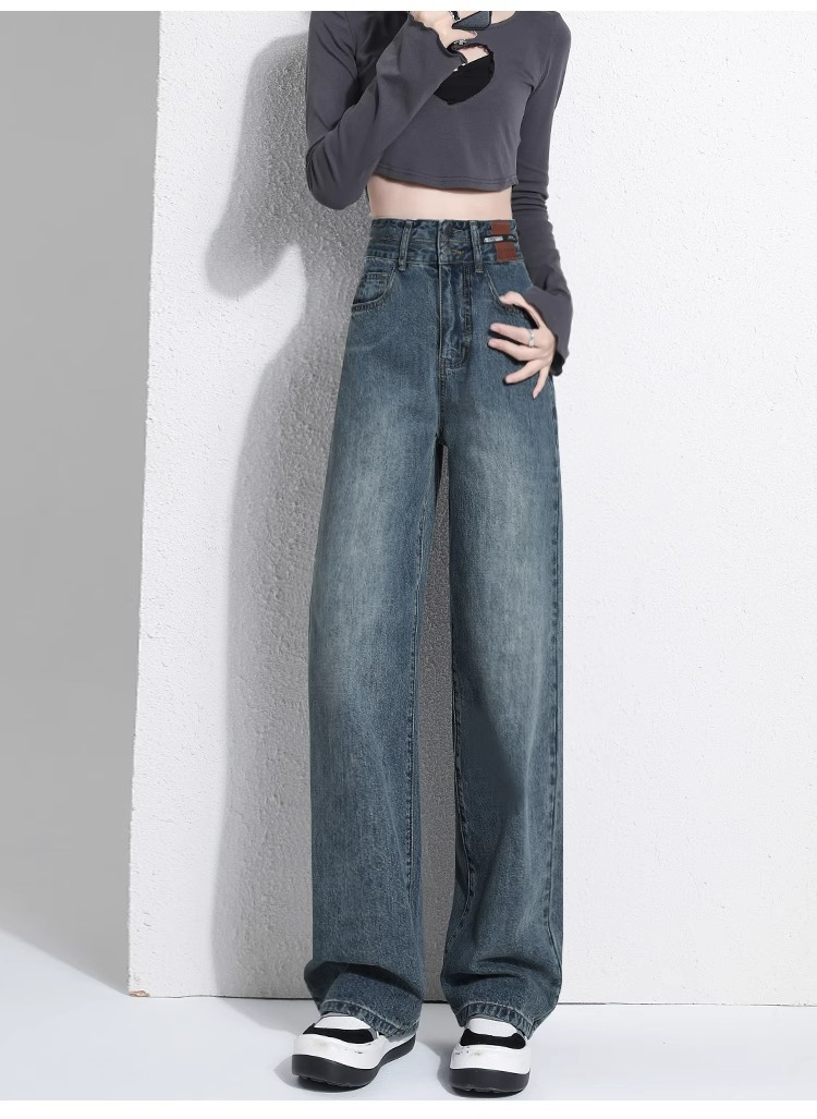 여성용 기모 바지 가을 겨울 슬림핏 스트레이트 데님 팬츠 여성용 키 작은 여성용 하이웨이스트 스트레이트 팬츠 여성용 데님 슬림핏 롱 팬츠스토어 가기