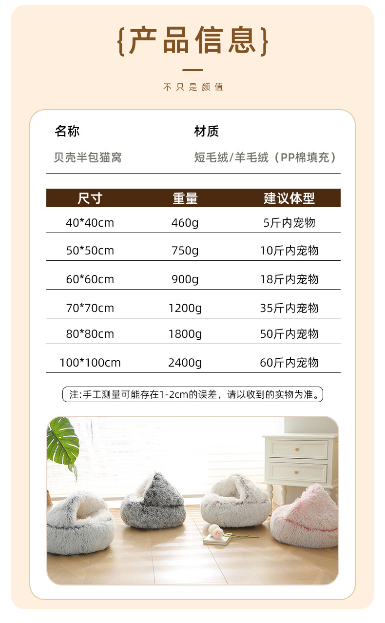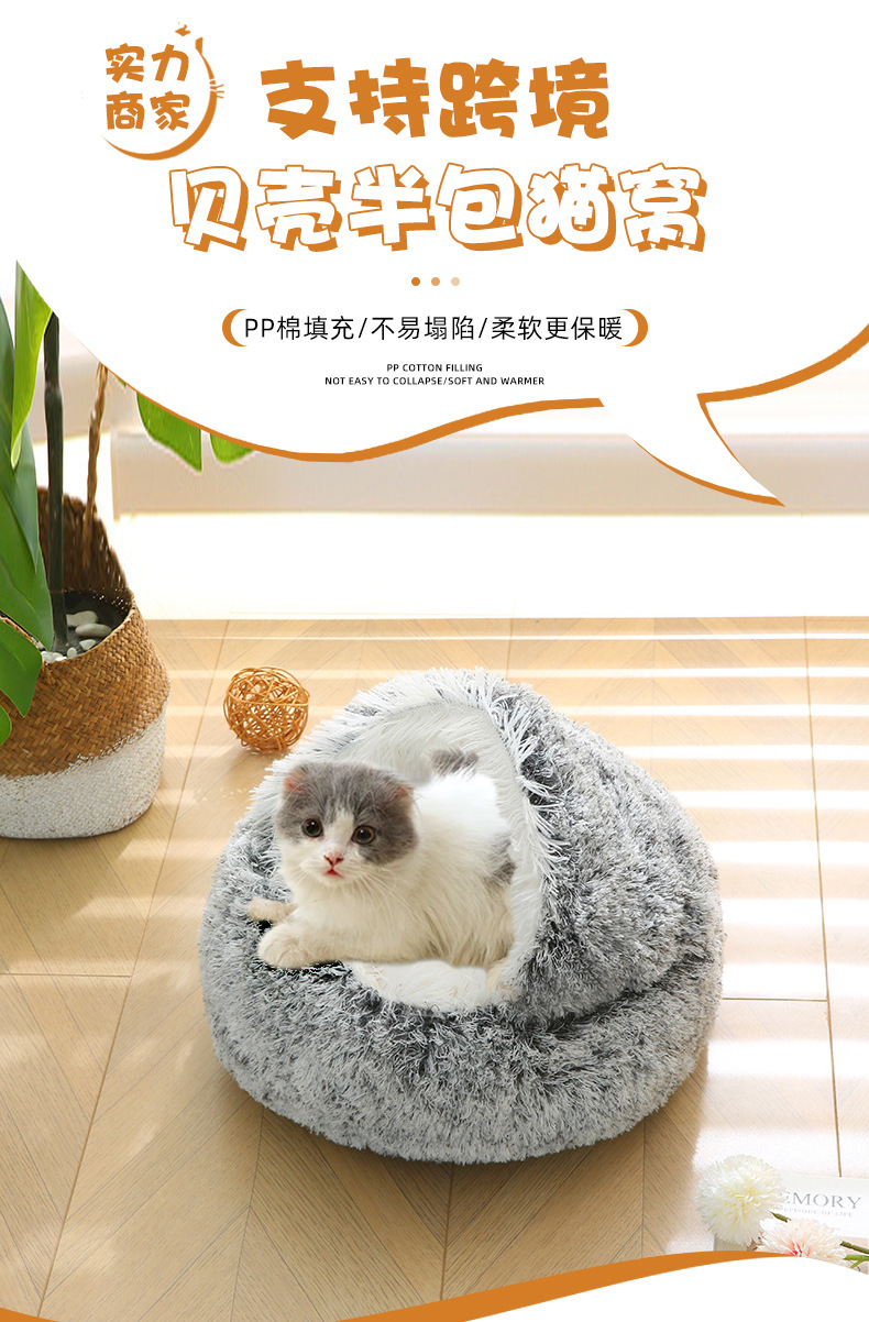 국경 간 겨울 봉제 따뜻한 쉘 반 폐쇄 고양이 둥지 애완 동물 고양이 침대 반 밀폐 개 둥지 개 침대 고양이 둥지