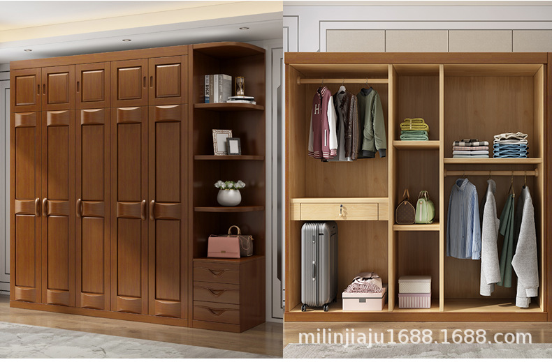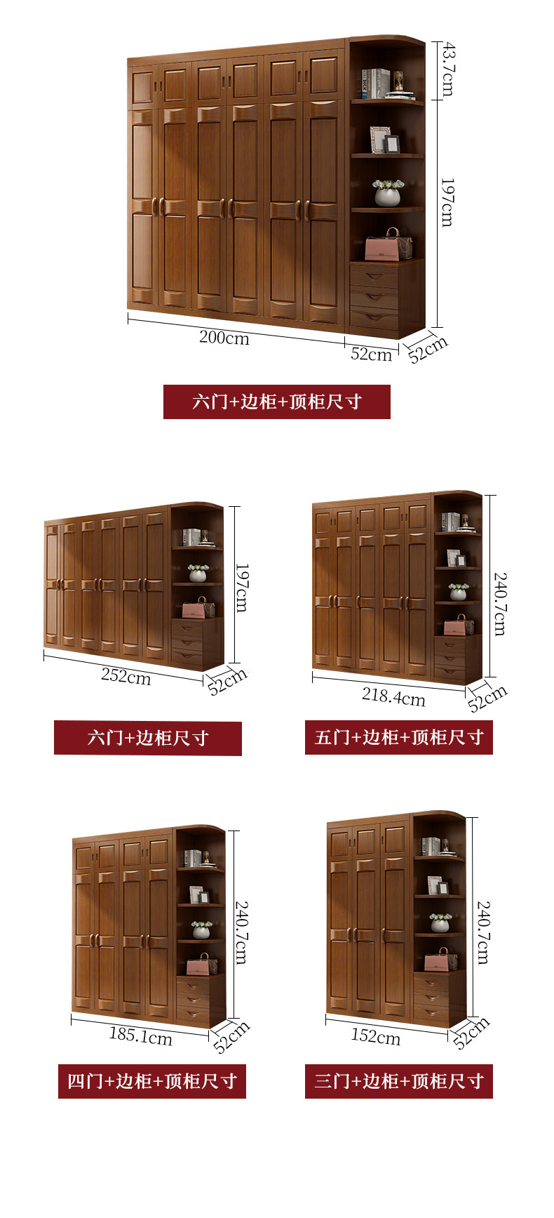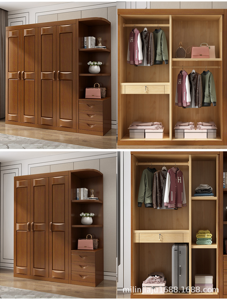 중국식 단단한 나무 옷장 현대적인 단순하고 경제적인 3 도어 4 도어 5 도어 전체 옷장 보관 캐비닛 단단한 나무 옷장