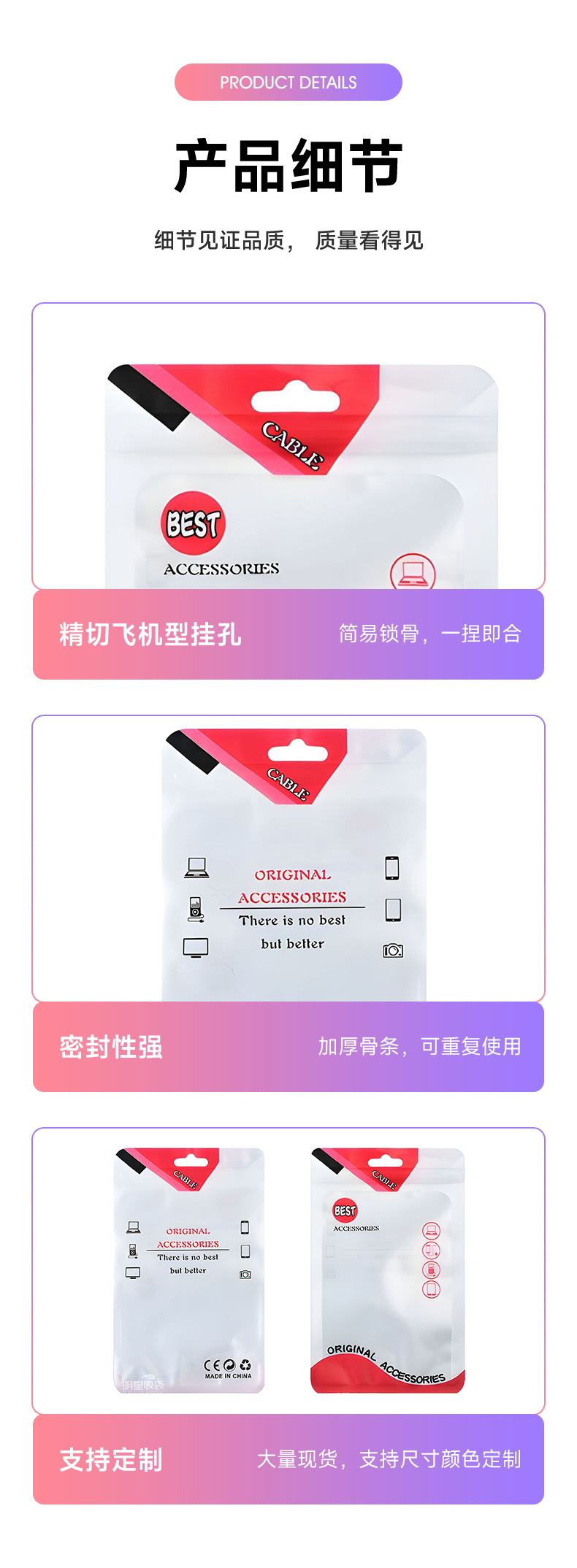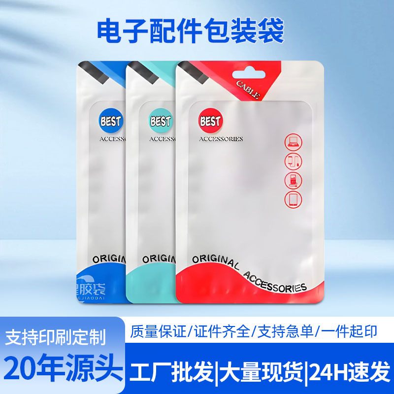 크로스보더 진주광택 필름 지퍼백 전자 액세서리 USB 데이터 케이블 밀봉 포장백 OPP 무광 컬러 인쇄 투명백