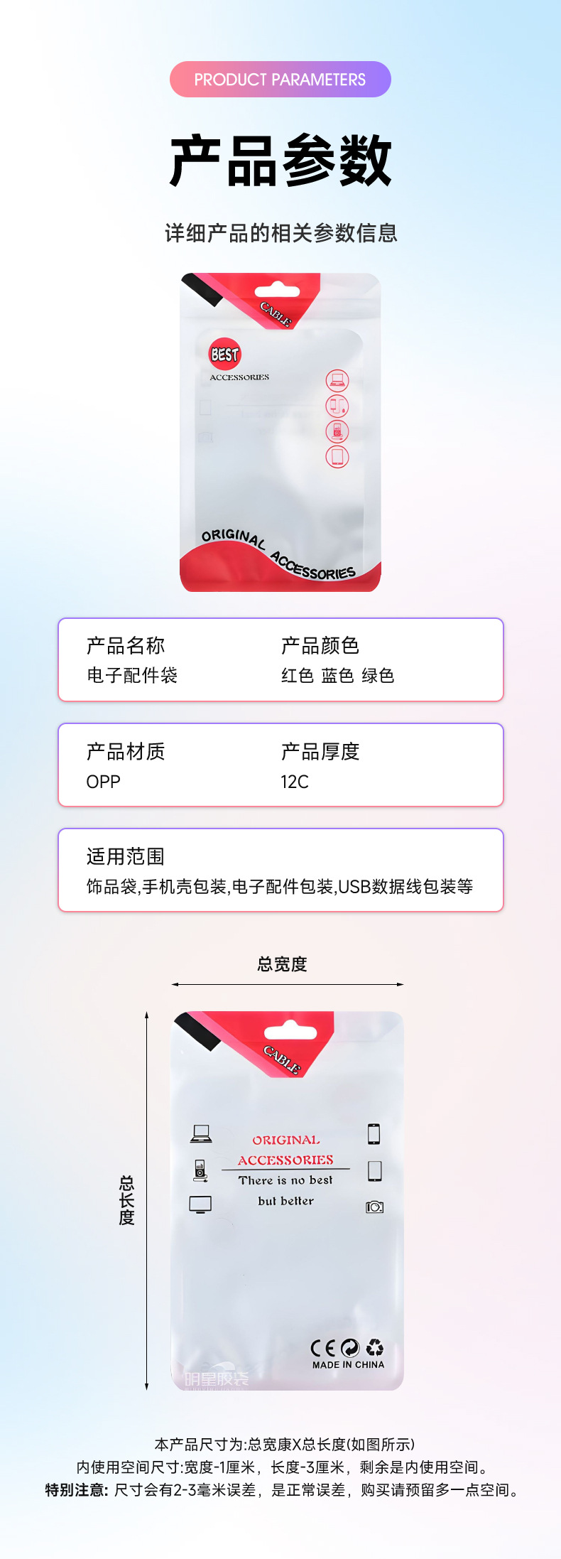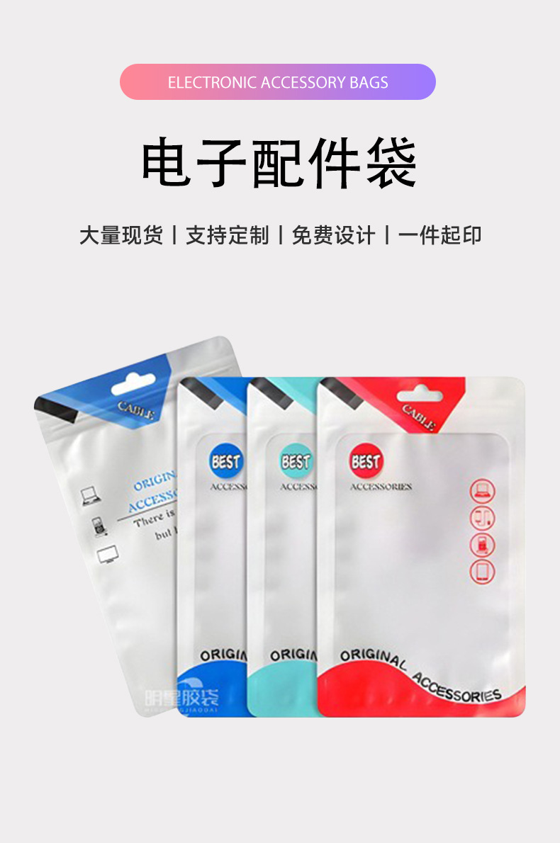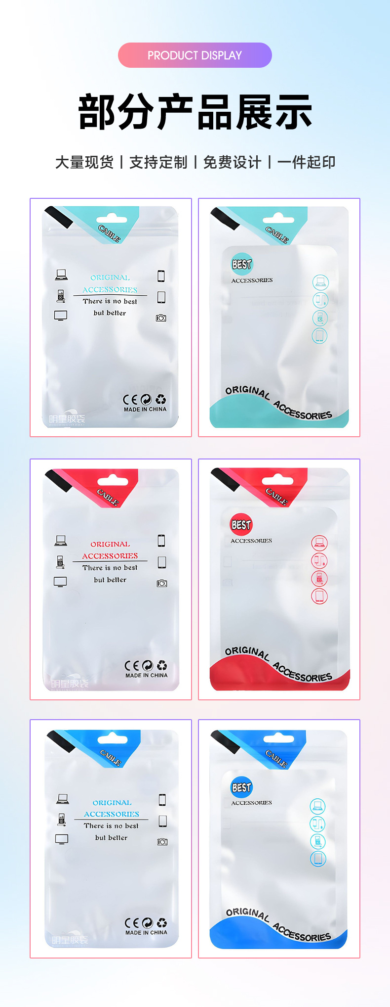 크로스보더 진주광택 필름 지퍼백 전자 액세서리 USB 데이터 케이블 밀봉 포장백 OPP 무광 컬러 인쇄 투명백스토어 가기