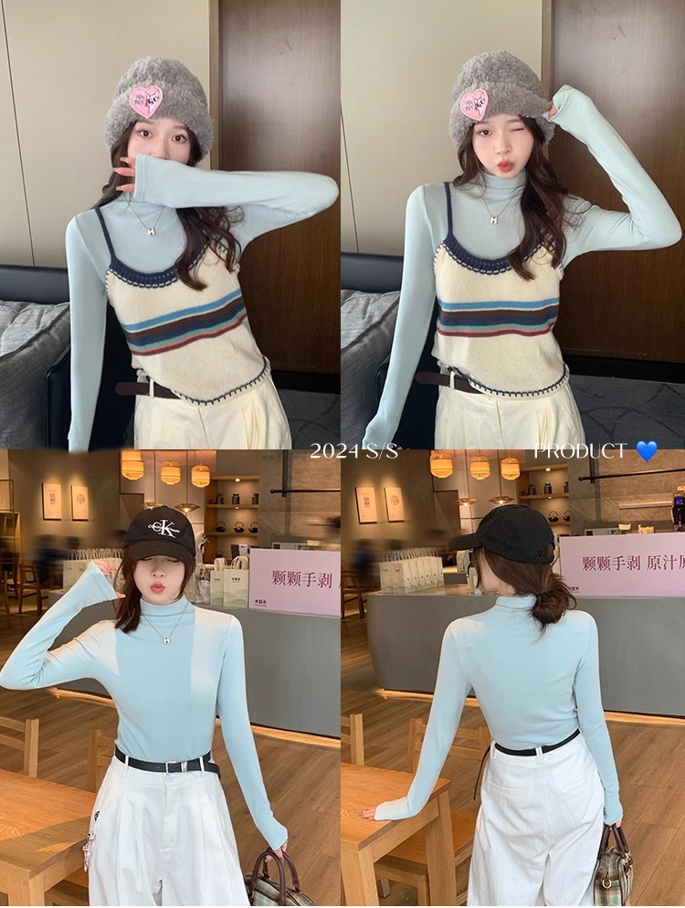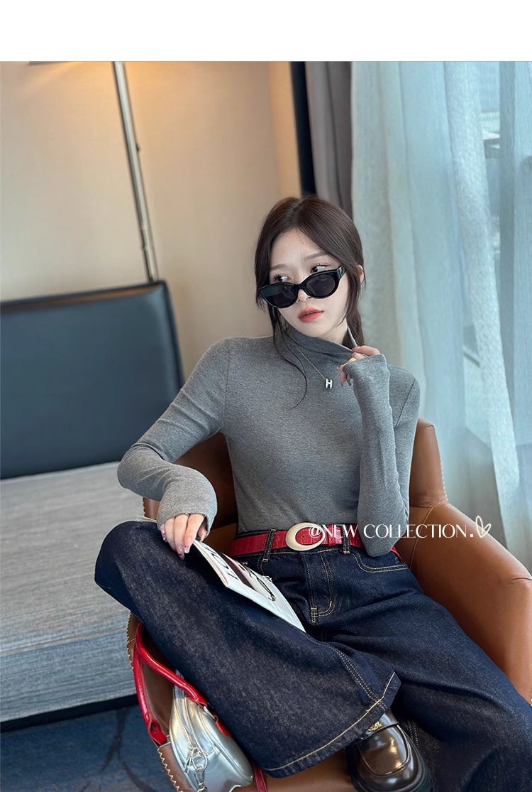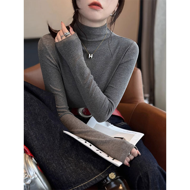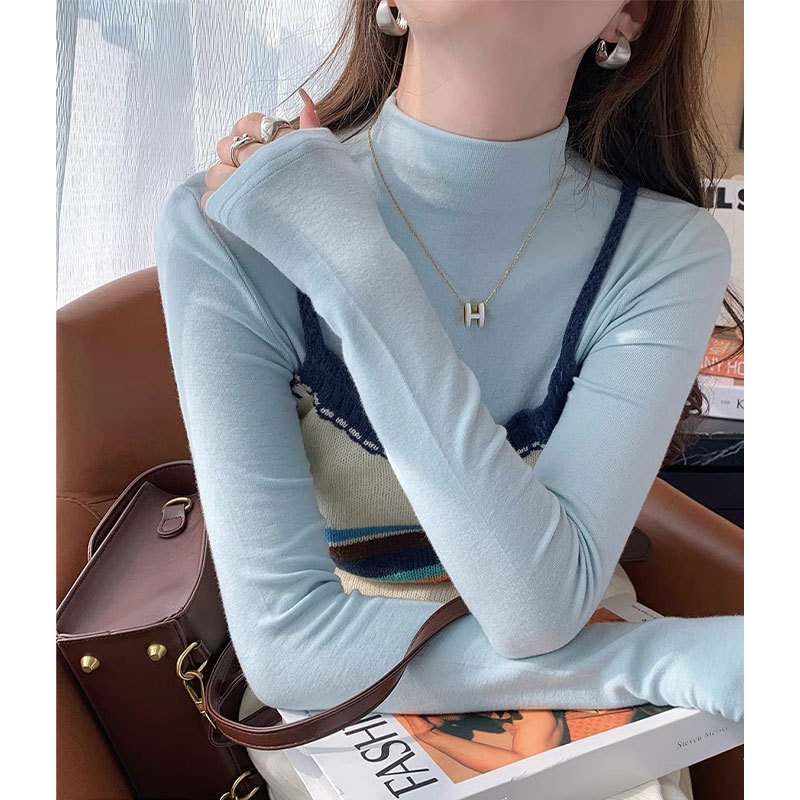 가을 겨울 여성용 블루 하프 터틀넥 셔츠 새로운 스타일의 독일 벨벳 따뜻한 이너웨어 슬림핏 긴팔 탑스토어 가기
