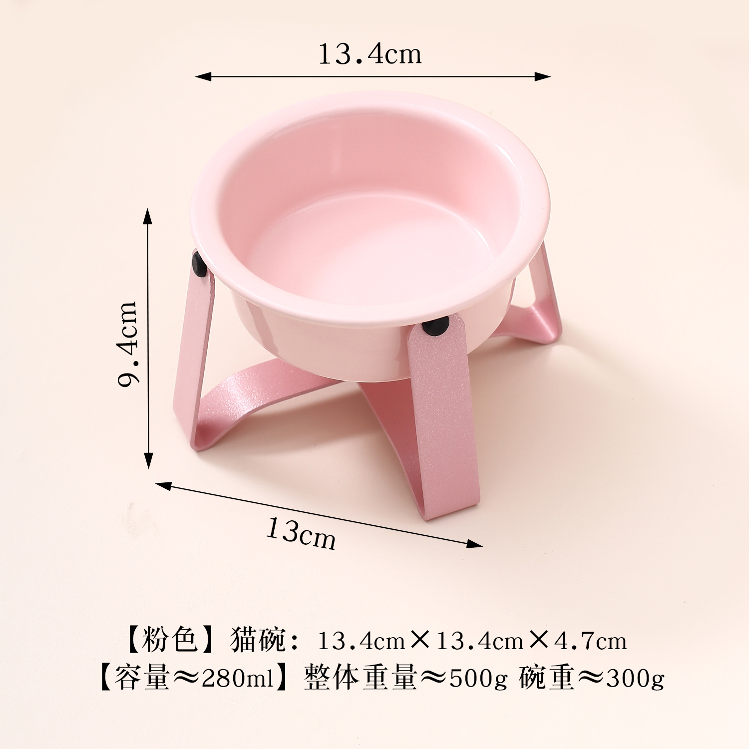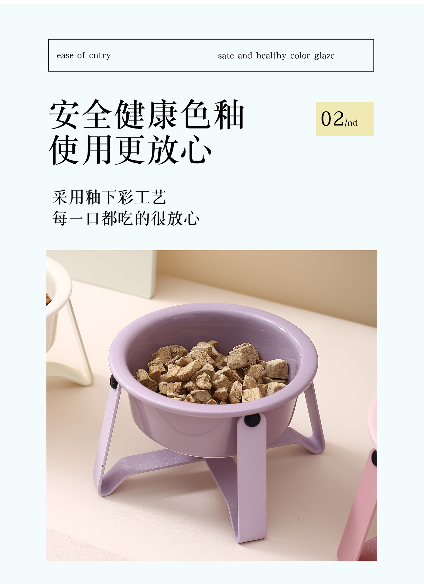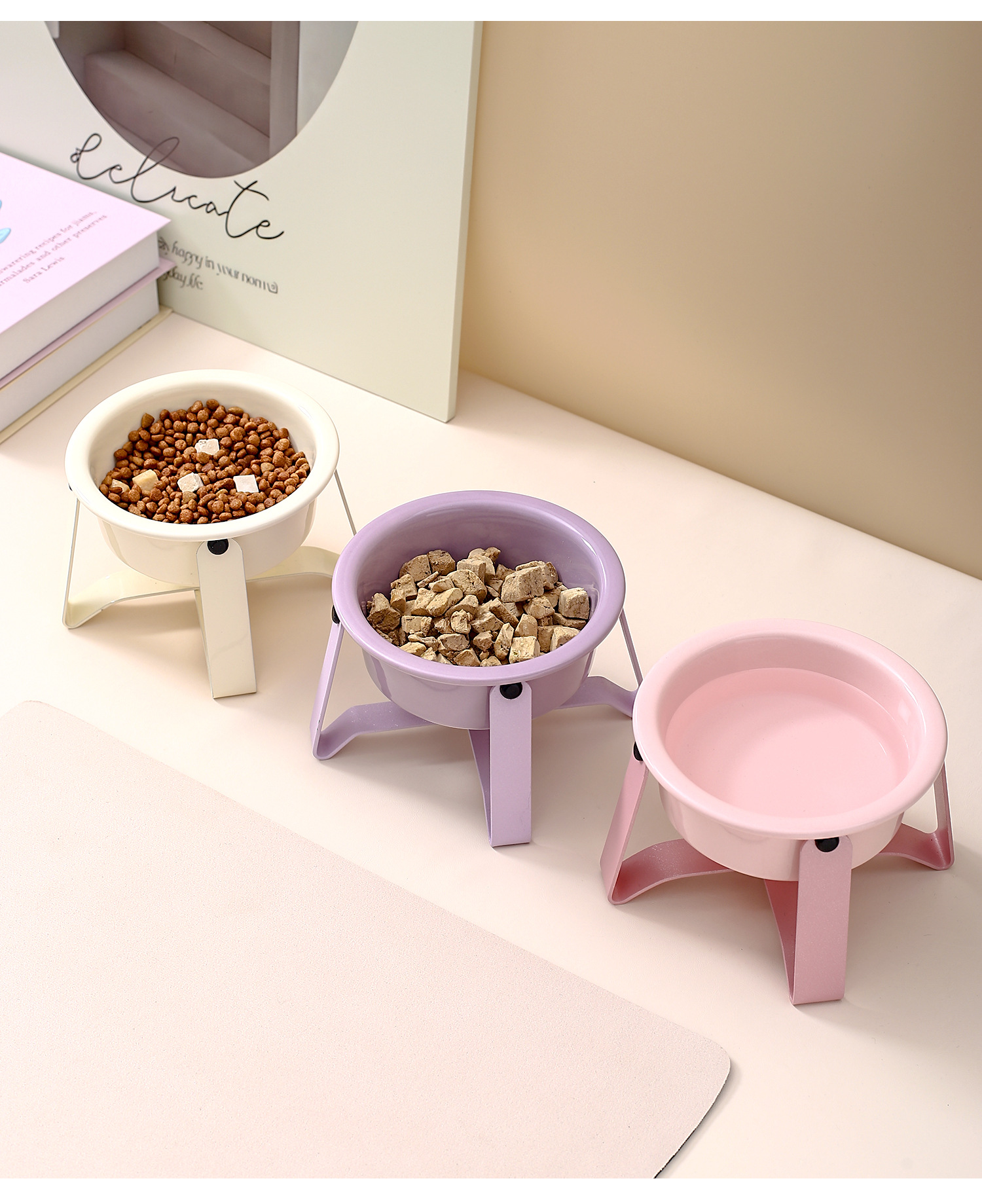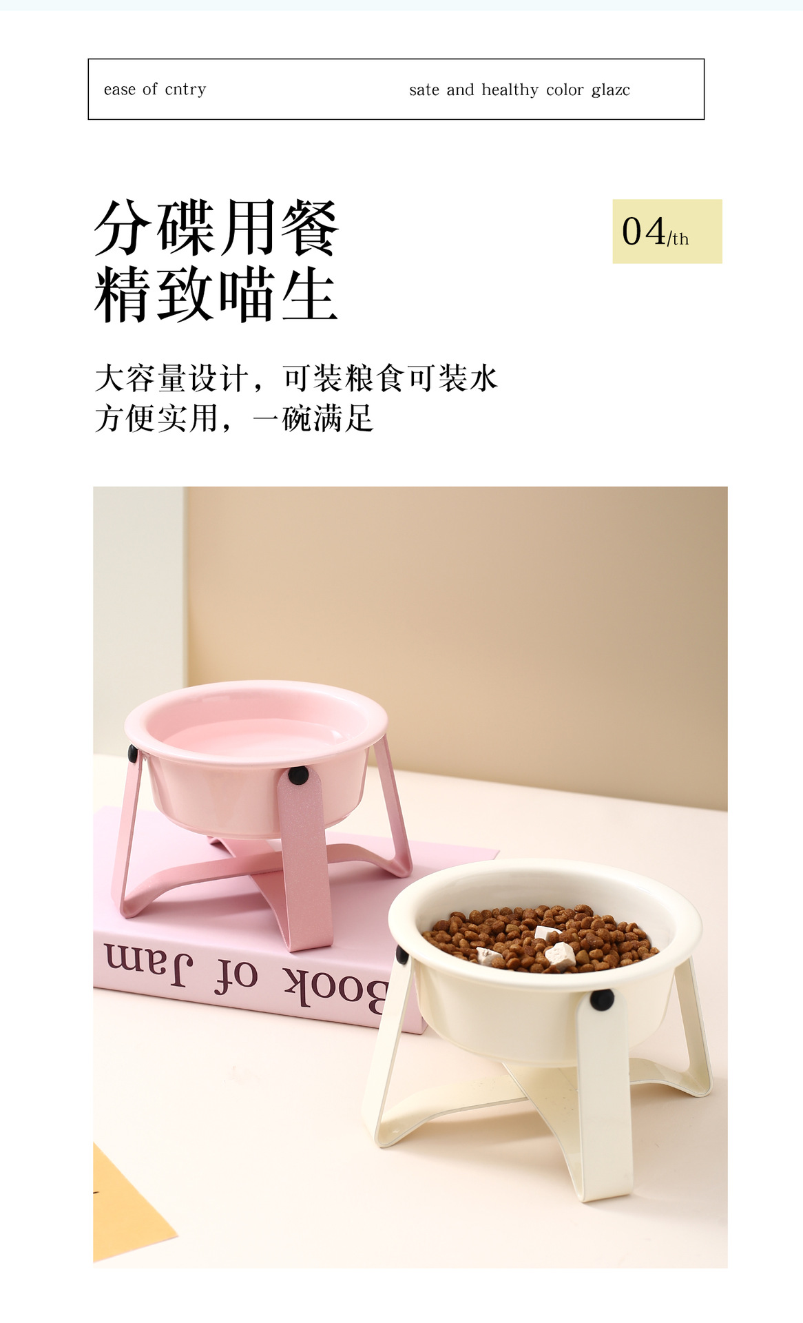 짧은 철 프레임 세라믹 애완 동물 그릇 높은 발 보호 자궁 경부 척추 고양이 그릇 개 그릇 고양이 먹이 분지로 창조적 인 크림 스타일 측면 보호 그릇