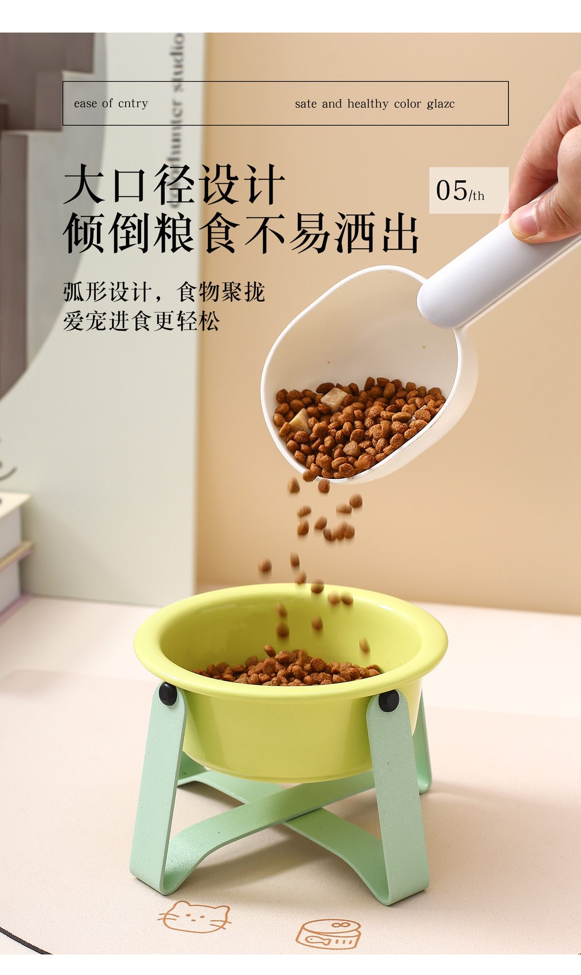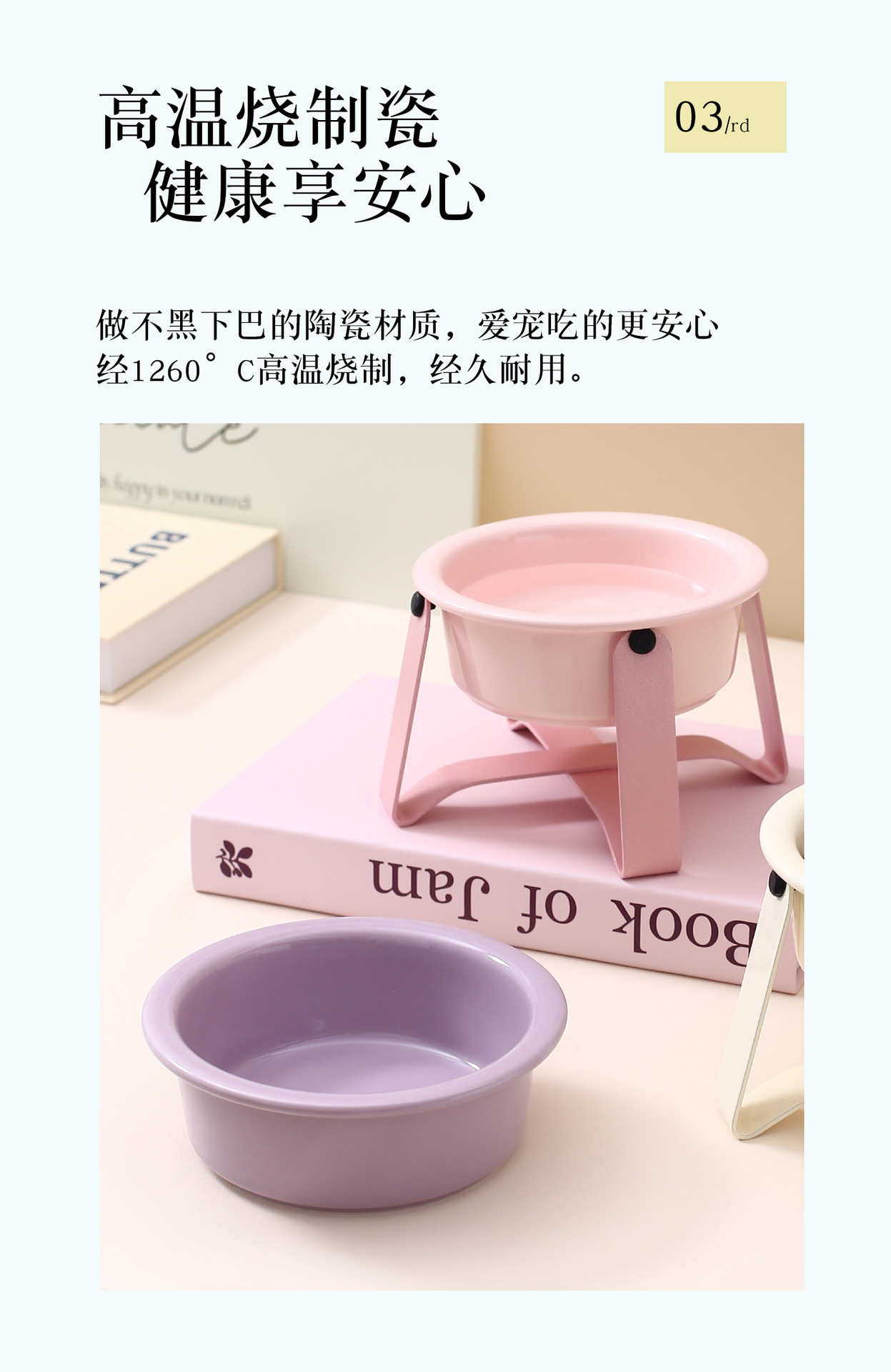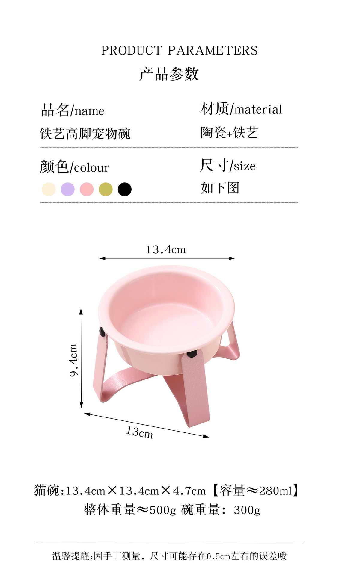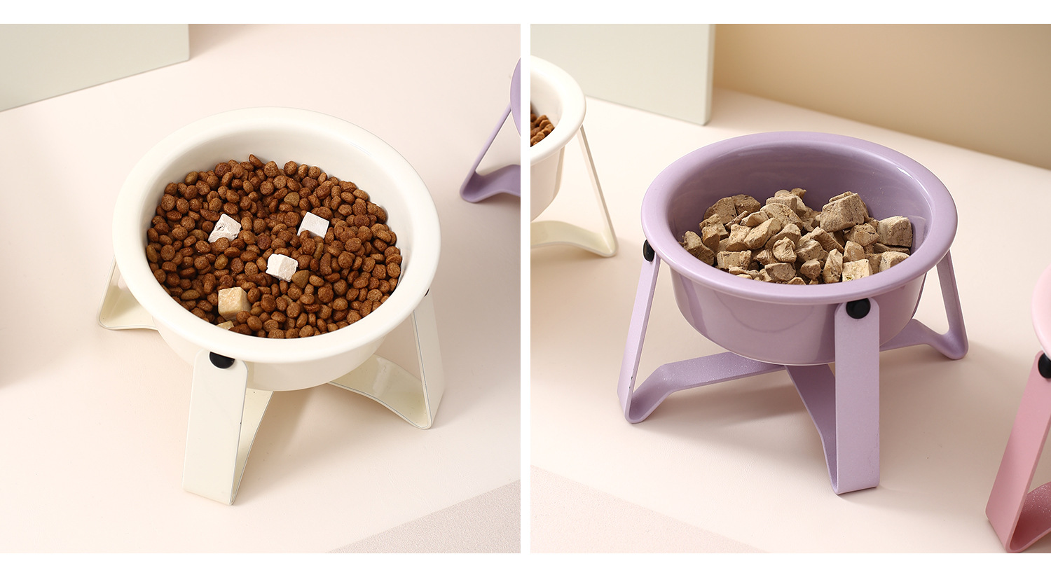 짧은 철 프레임 세라믹 애완 동물 그릇 높은 발 보호 자궁 경부 척추 고양이 그릇 개 그릇 고양이 먹이 분지로 창조적 인 크림 스타일 측면 보호 그릇