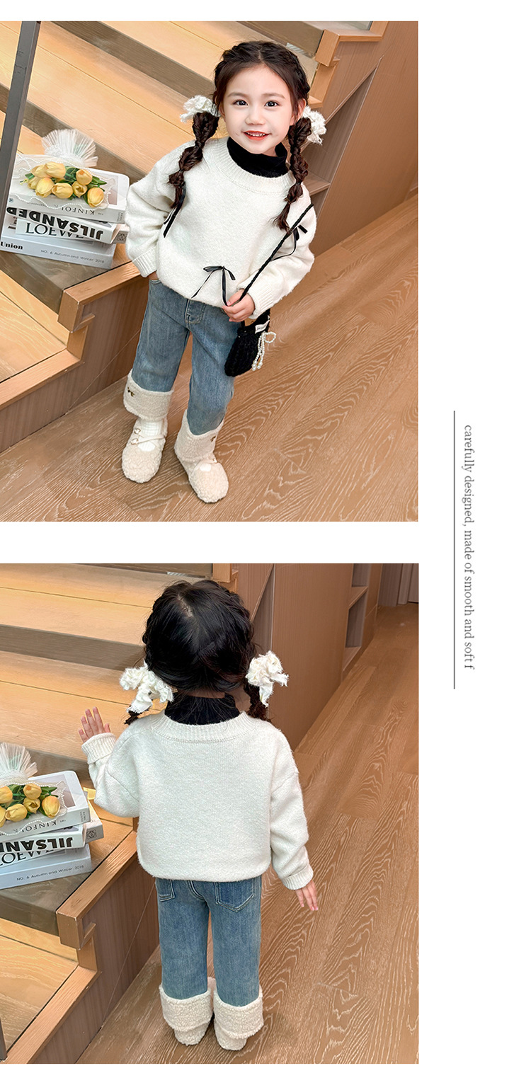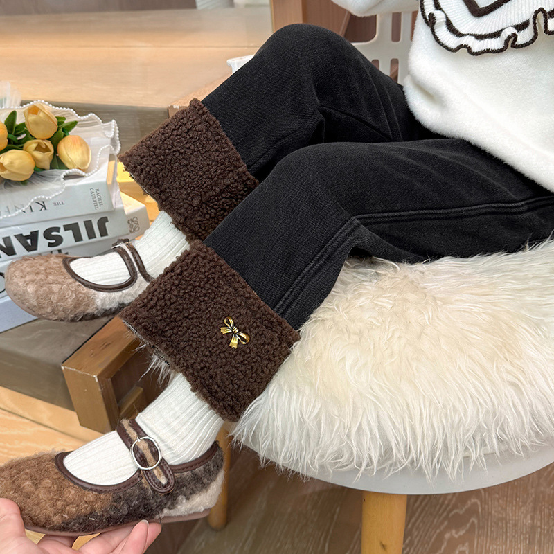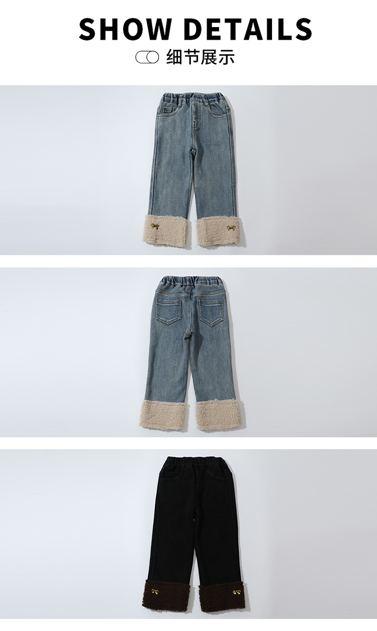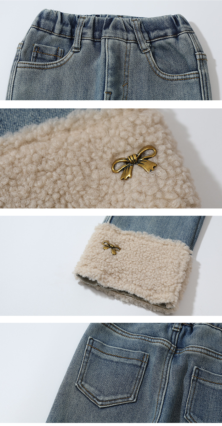 여아용 플리스 데님 팬츠 가을 겨울 2025 신상 아동 한국 스타일 겨울 스플라이스 두꺼운 일자 바지스토어 가기
