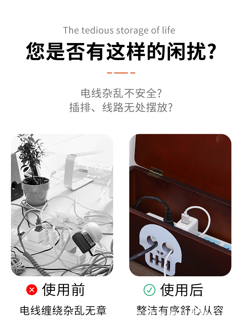 단단한 나무 철사 저장 상자 셋톱 상자 저장 상자 라우터 전원 코드 랙 사용자 정의 로고 수 있습니다