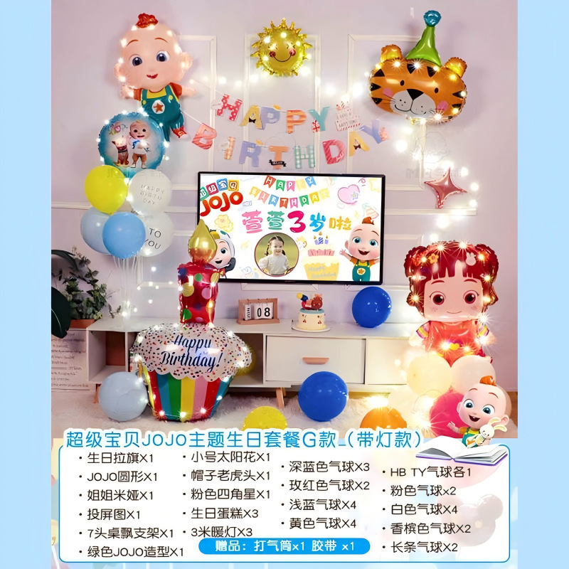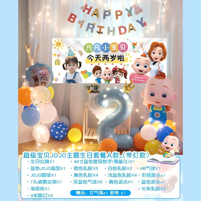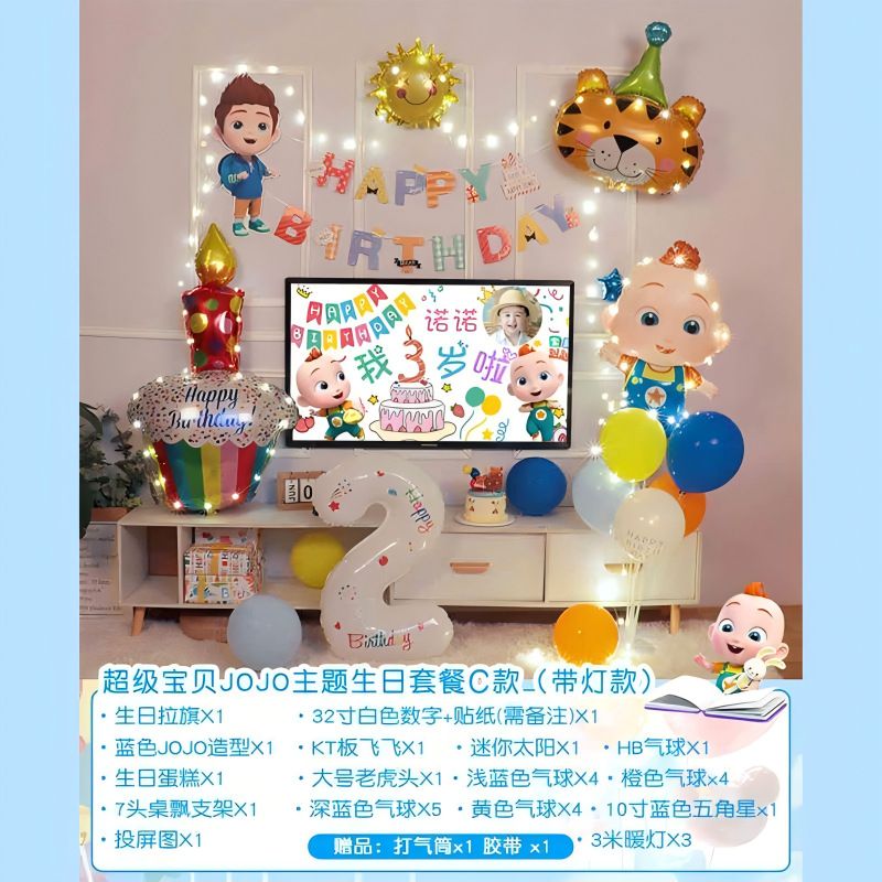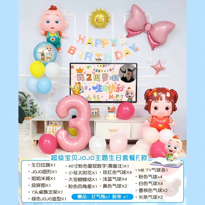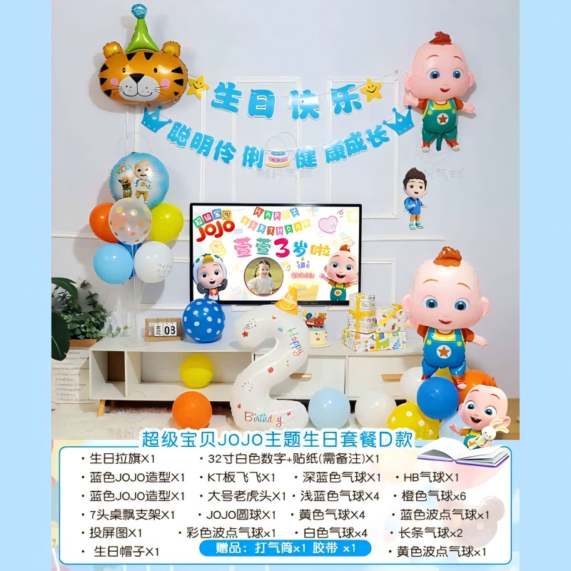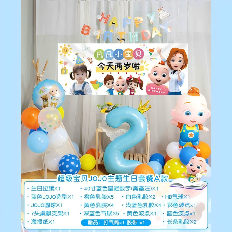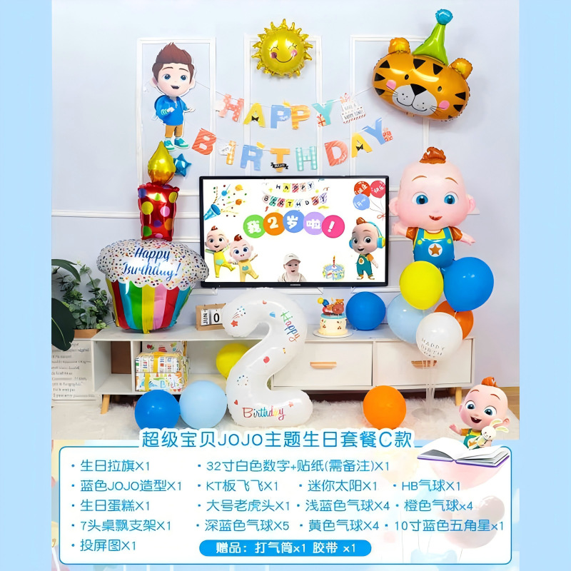슈퍼 베이비 조조 1 년 된 생일 풍선 세트 어린이 1 년 된 생일 파티 장식 배경 장면 레이아웃스토어 가기