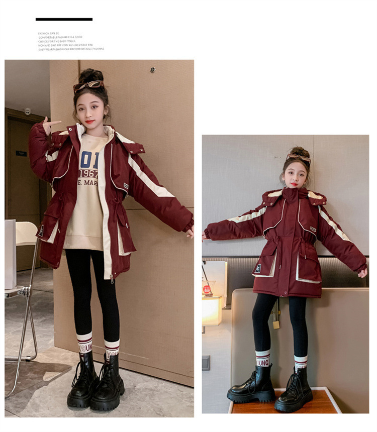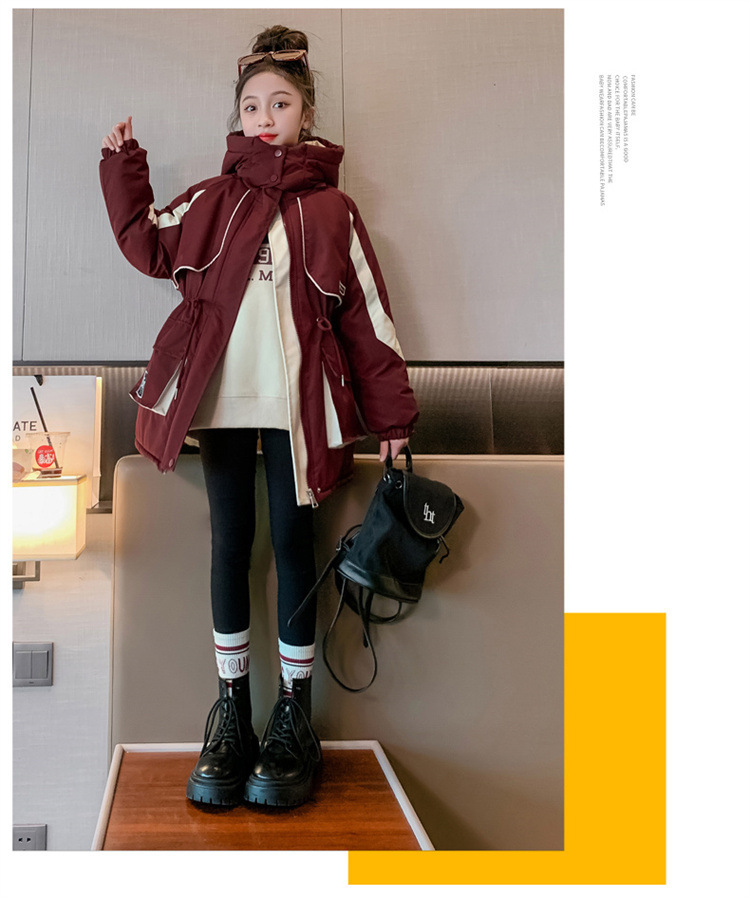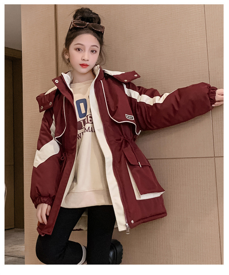 벨벳 코트 가을과 겨울 면화 충전 옷 큰 어린이 겨울 새 소녀 두꺼운 면화 패딩 코트 2024 어린이 파이크 옷