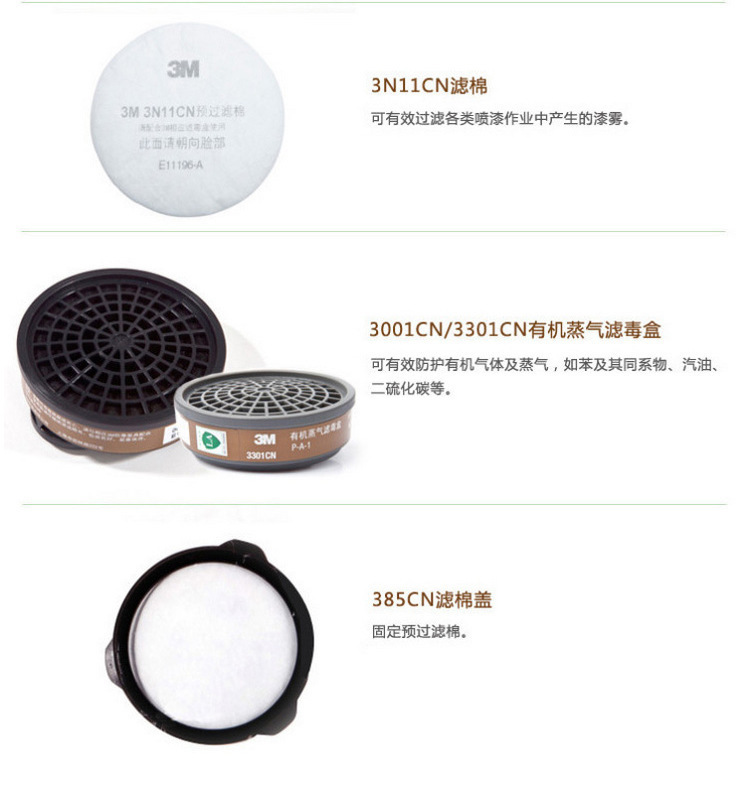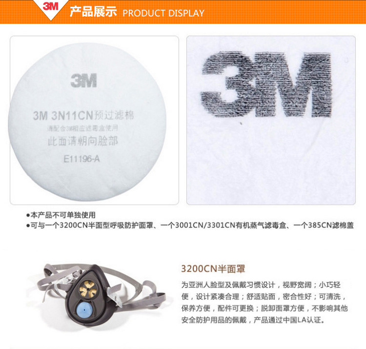 385 필터 캡과 3200 하프 마스크가있는 3M 3N11CN P1 사전 필터면