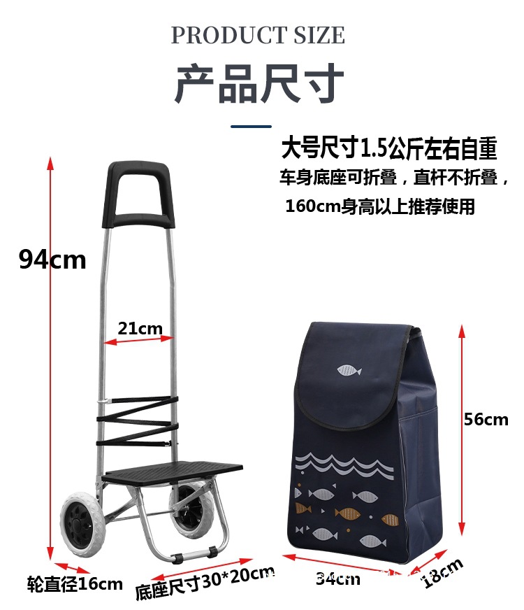 노인을위한 쇼핑 카트 소형 트롤리 경량 조용한 쇼핑 카트 접이식 트롤리 트레일러 핸드 트롤리 휴대용 홈 트롤리