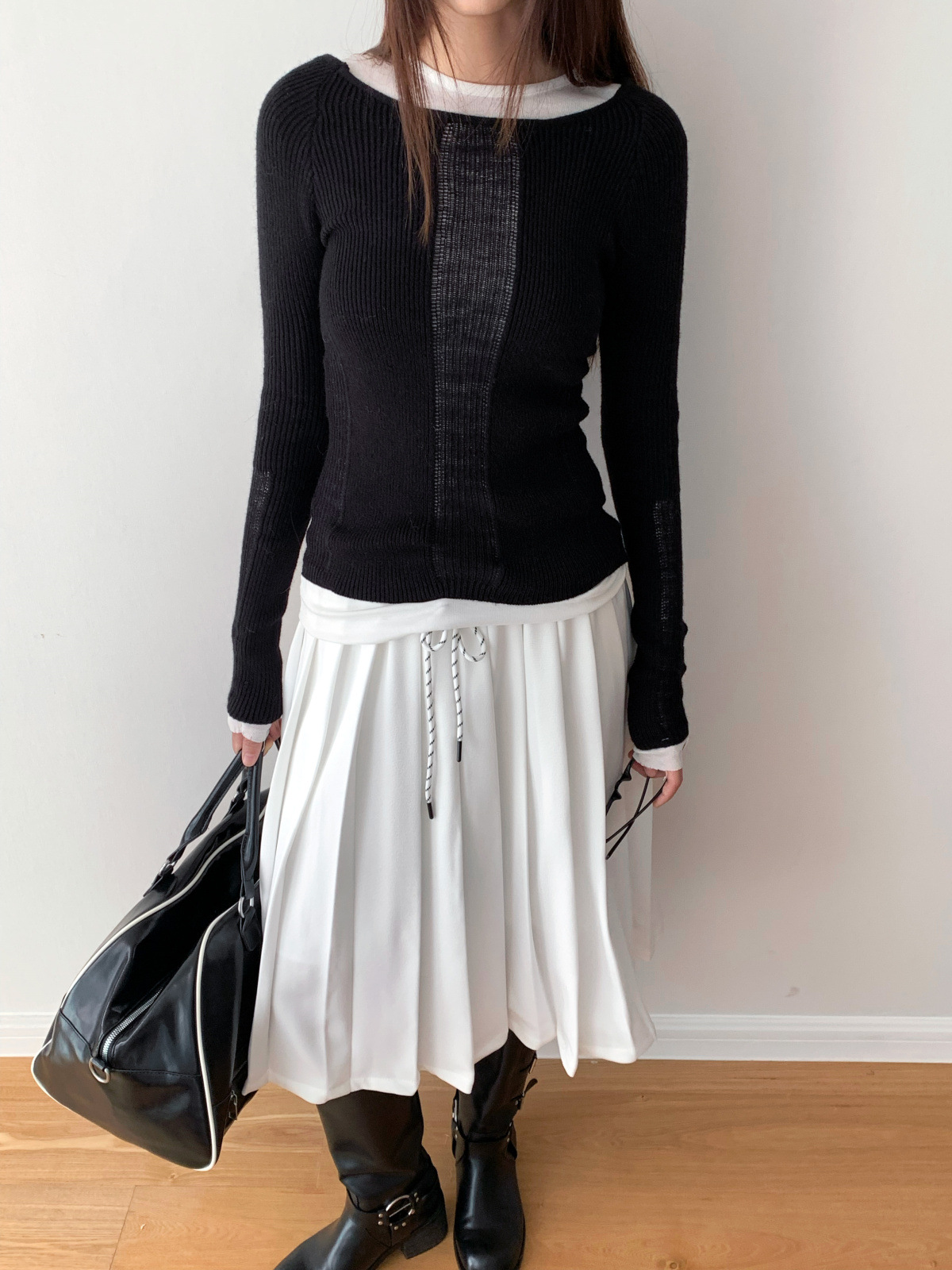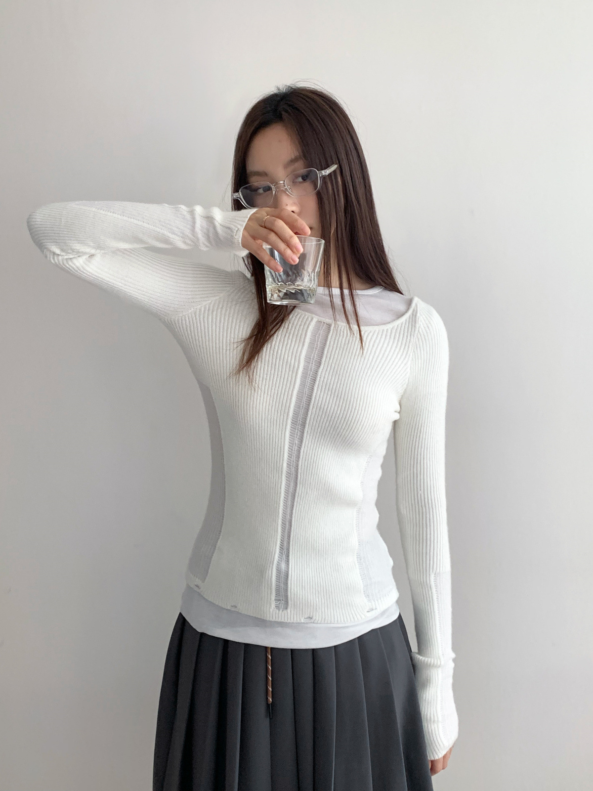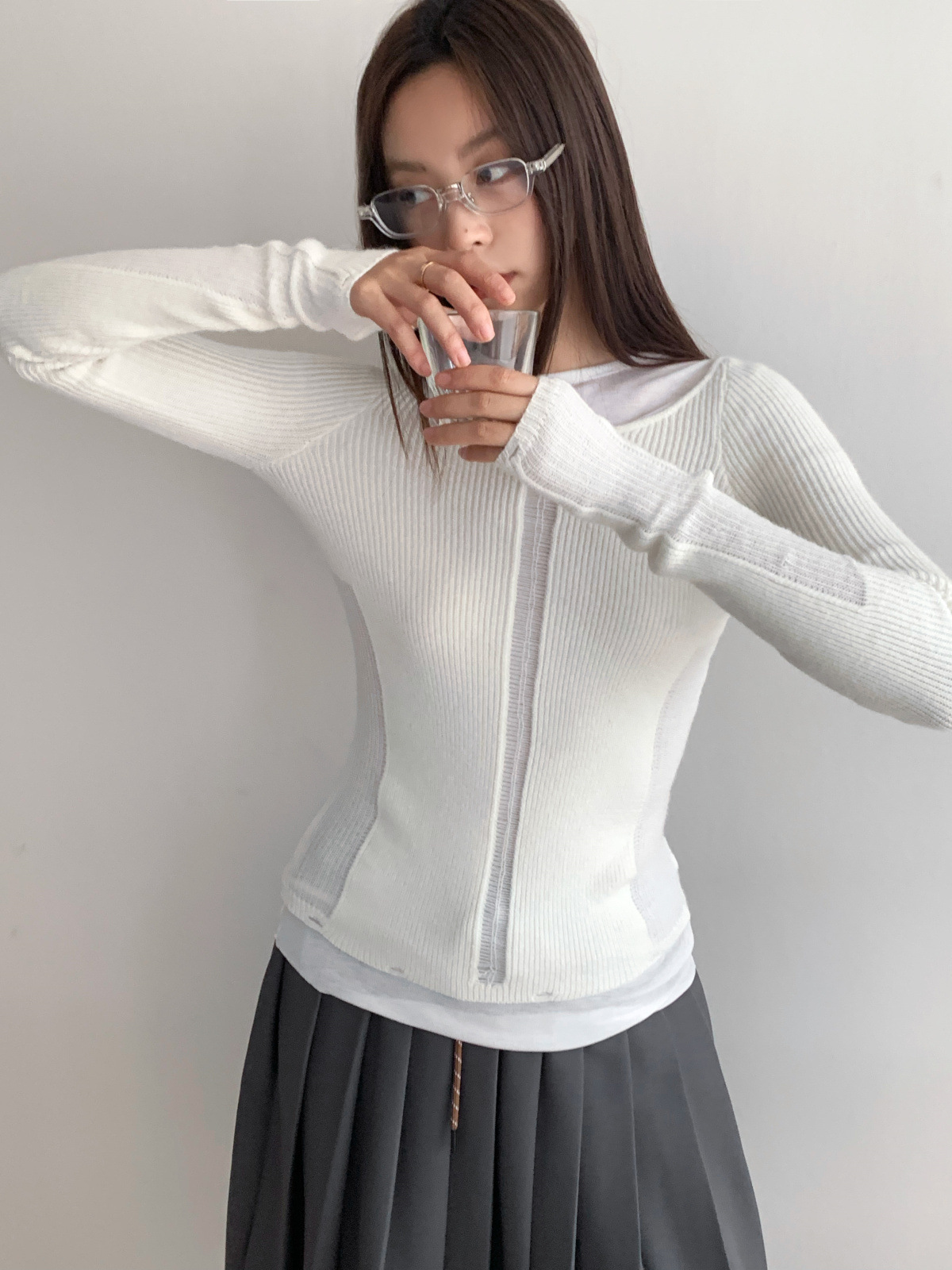 LOOPIN 한국 중공 긴팔 니트 스웨터 여성의 가을 올 매치 슬림 핏 슬리밍 디자인 크루 넥베이스 탑