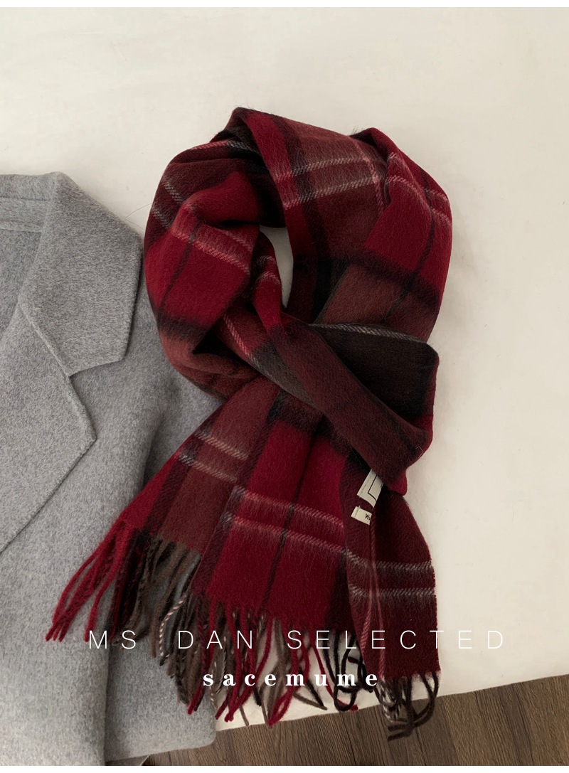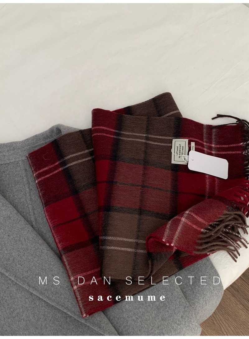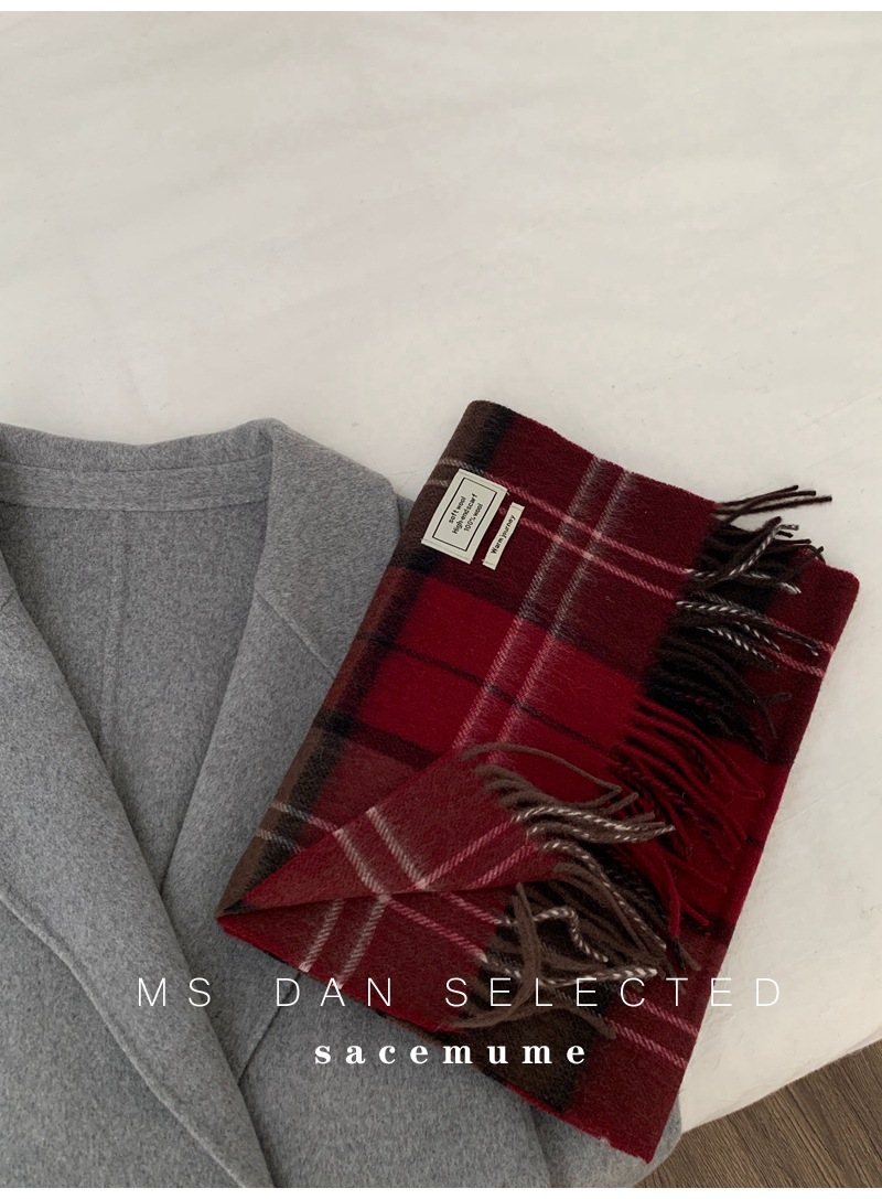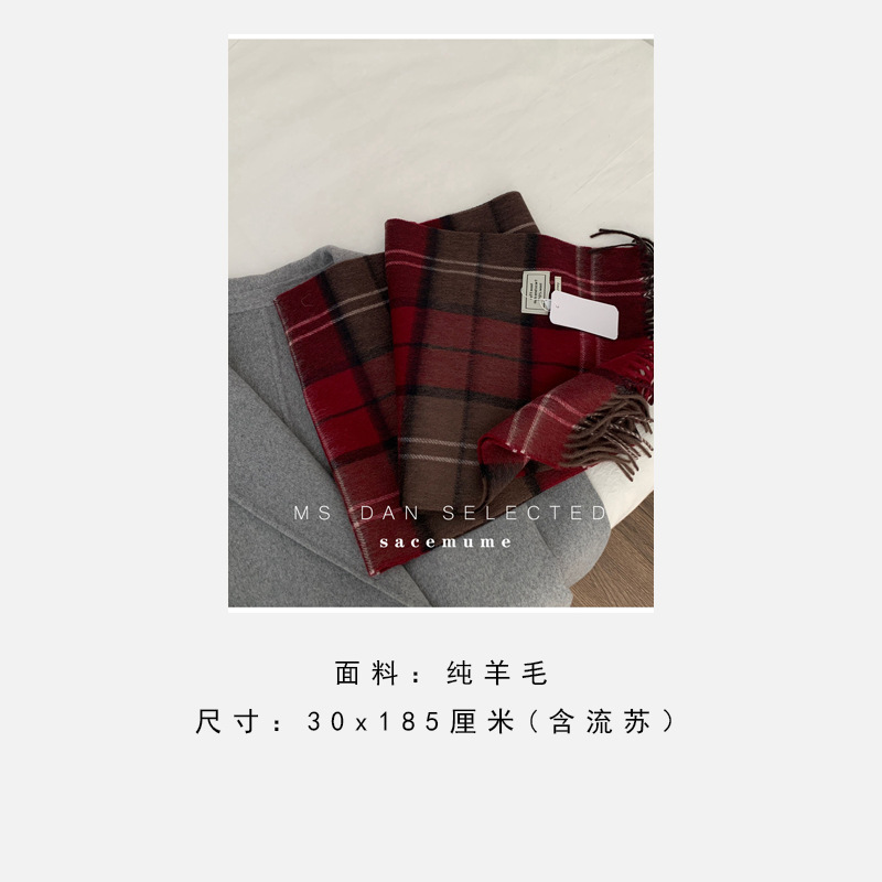 韩代款~韩国ins博主推荐大热安可拉红色100%Wool纯羊毛格子围巾冬