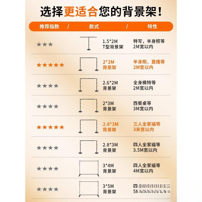 • 【2.6* 2m 】배경 스탠드 + [2* 3m 】업그레이드된 배경 천(무료 팩 4개)