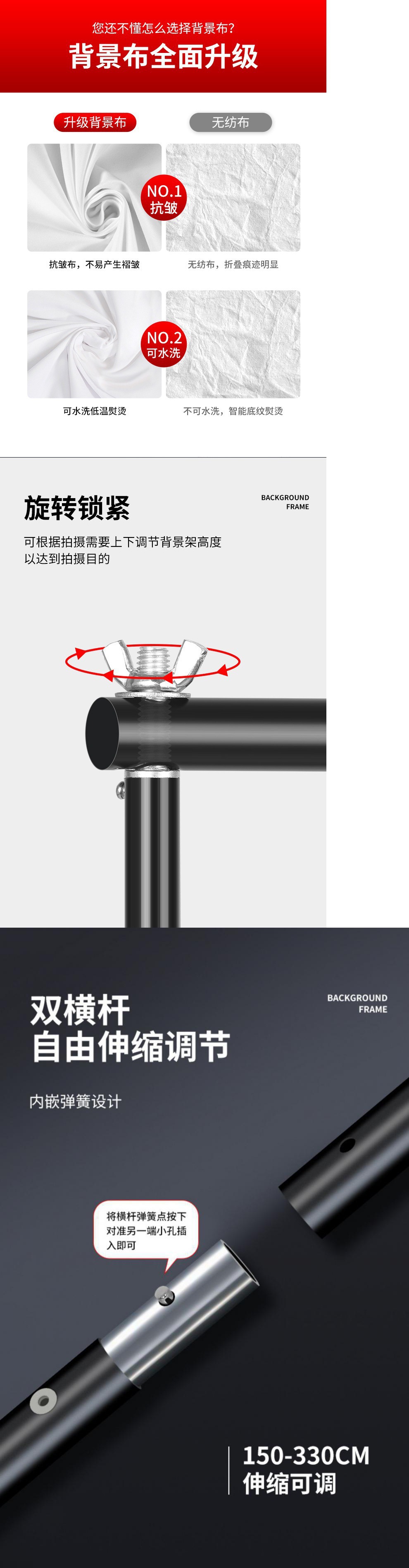 • 【2* 3m 】배경 스탠드 +【3* 3m 】배경 천 업그레이드(클립 4개 포함)