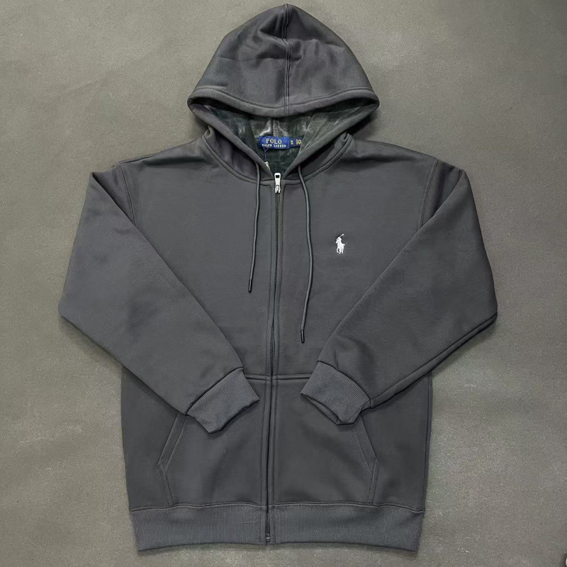 가을, 겨울 벨벳 폴 포니 자수 솔리드 컬러 스웨트 셔츠 남성 캐주얼 코튼 후드 지퍼 카디건 자켓스토어 가기