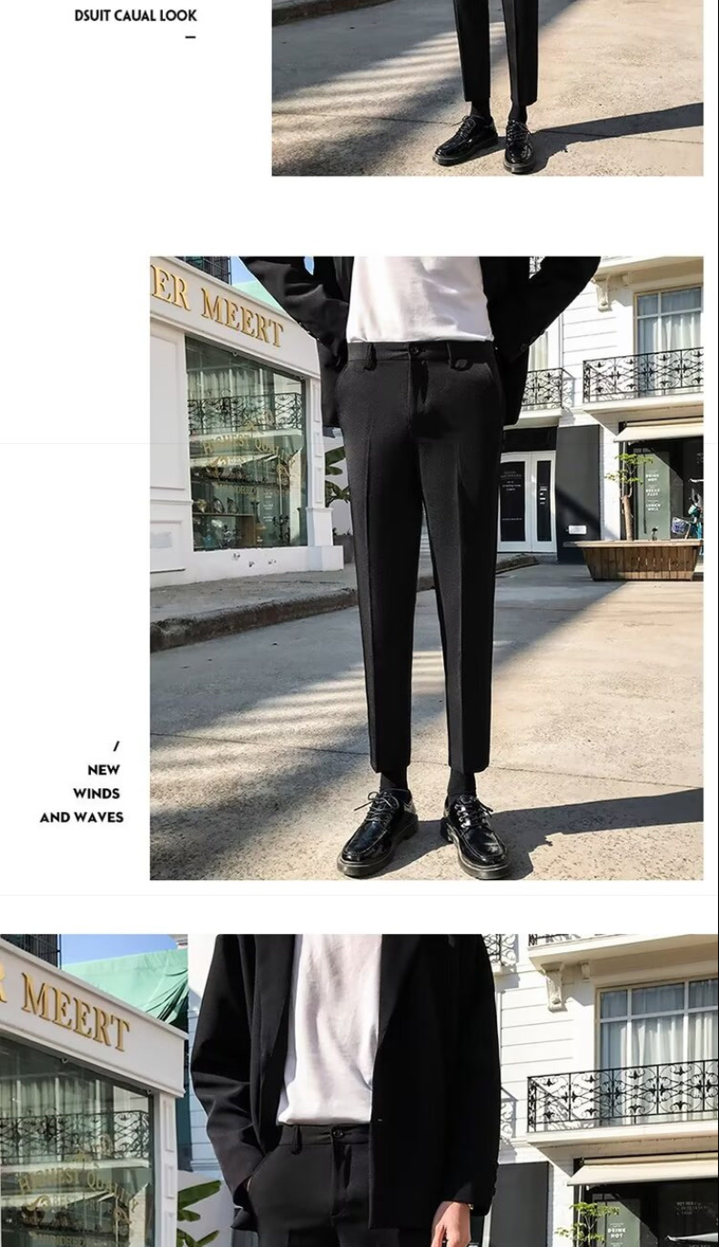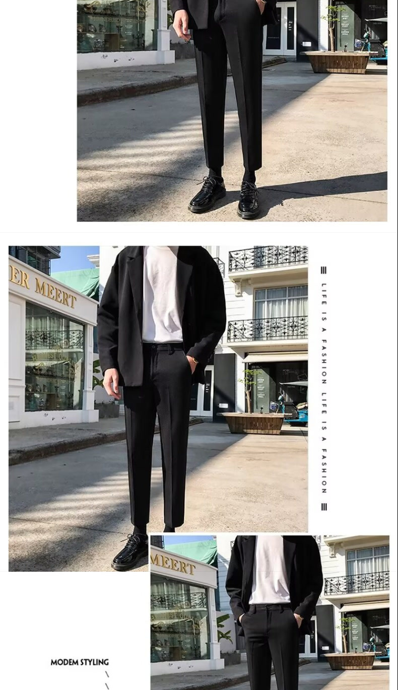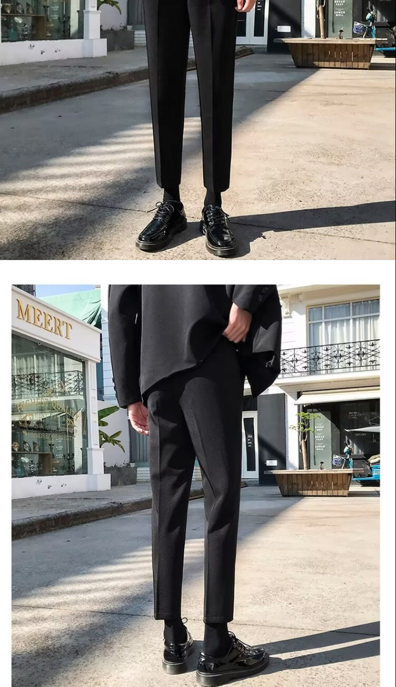 새로운 도착 오버롤 남자 한국 스타일 패션 올 매치 바지 남자 가을 겨울 남자 느슨한 서양 바지 스트레이트 발목 길이 바지