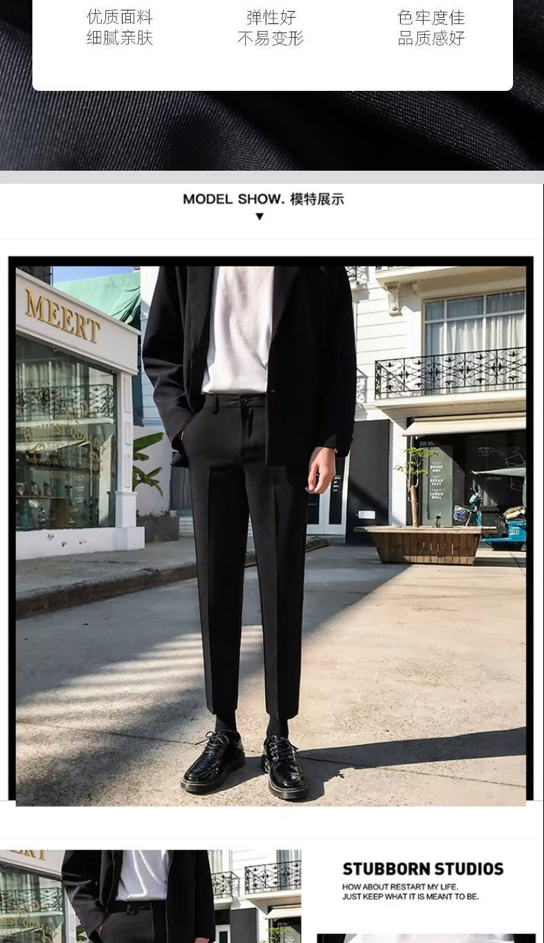 새로운 도착 오버롤 남자 한국 스타일 패션 올 매치 바지 남자 가을 겨울 남자 느슨한 서양 바지 스트레이트 발목 길이 바지스토어 가기