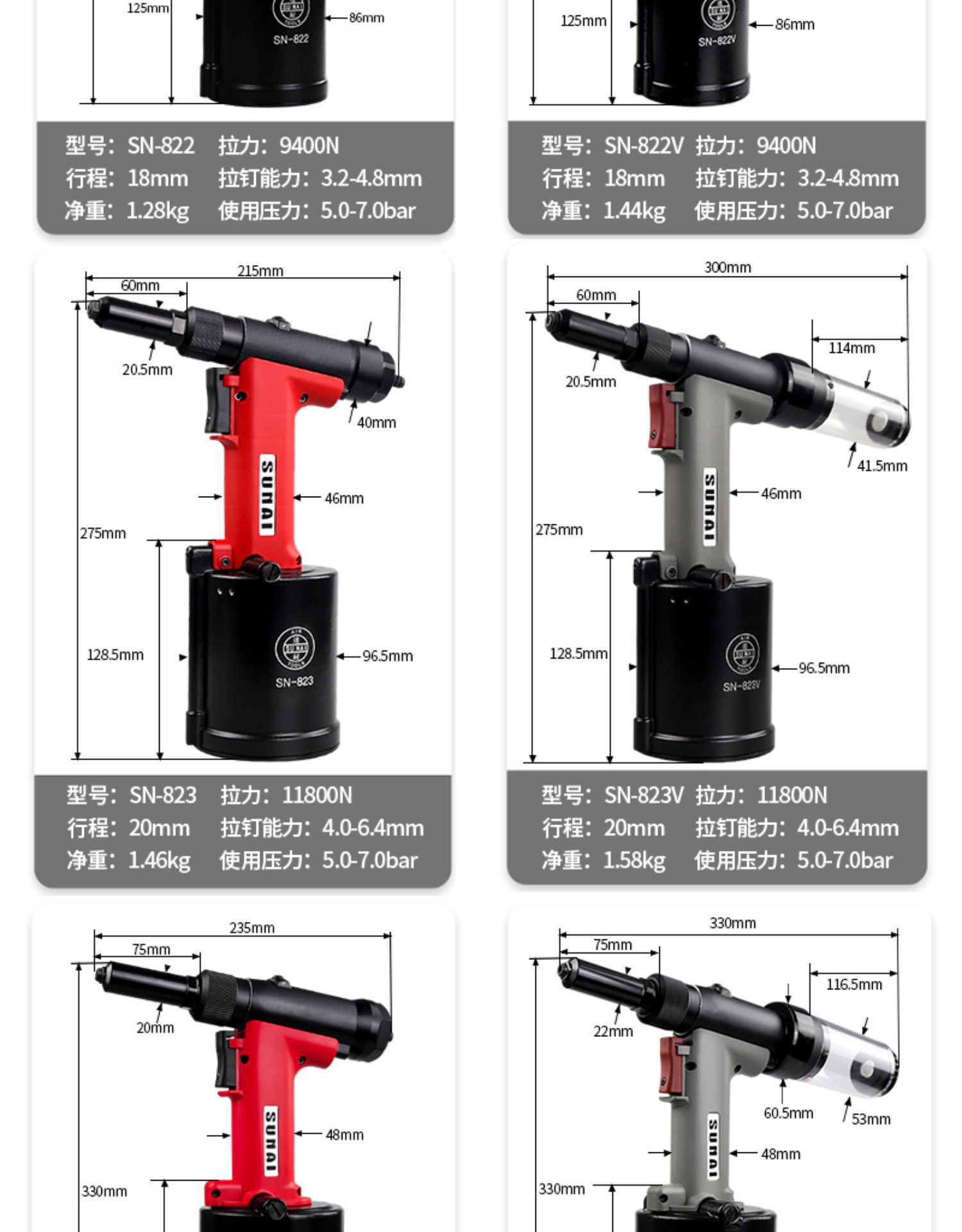 • SN-822V(3.2-4.8mm) 자흡식 모델
