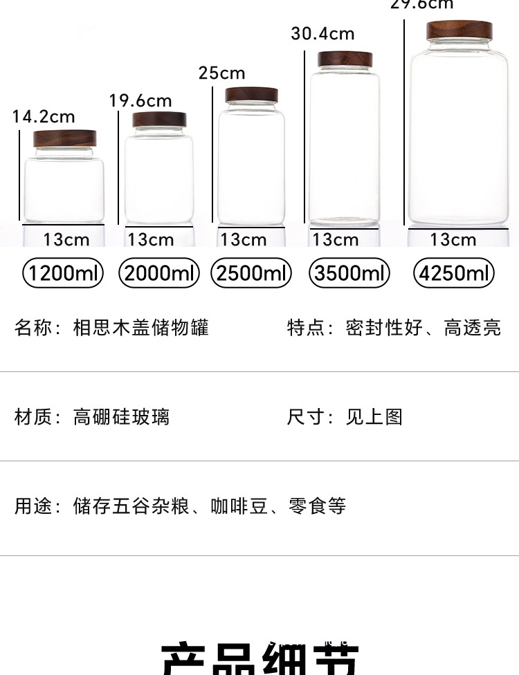 봉인 된 항아리 유리 식품 등급 가정용 고 붕규산염 곡물 커피 콩 주방 방습 보관 투명 항아리