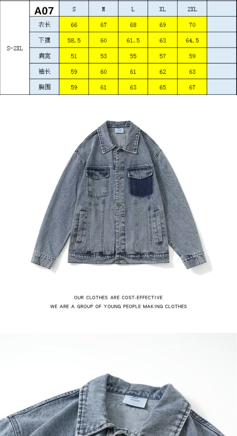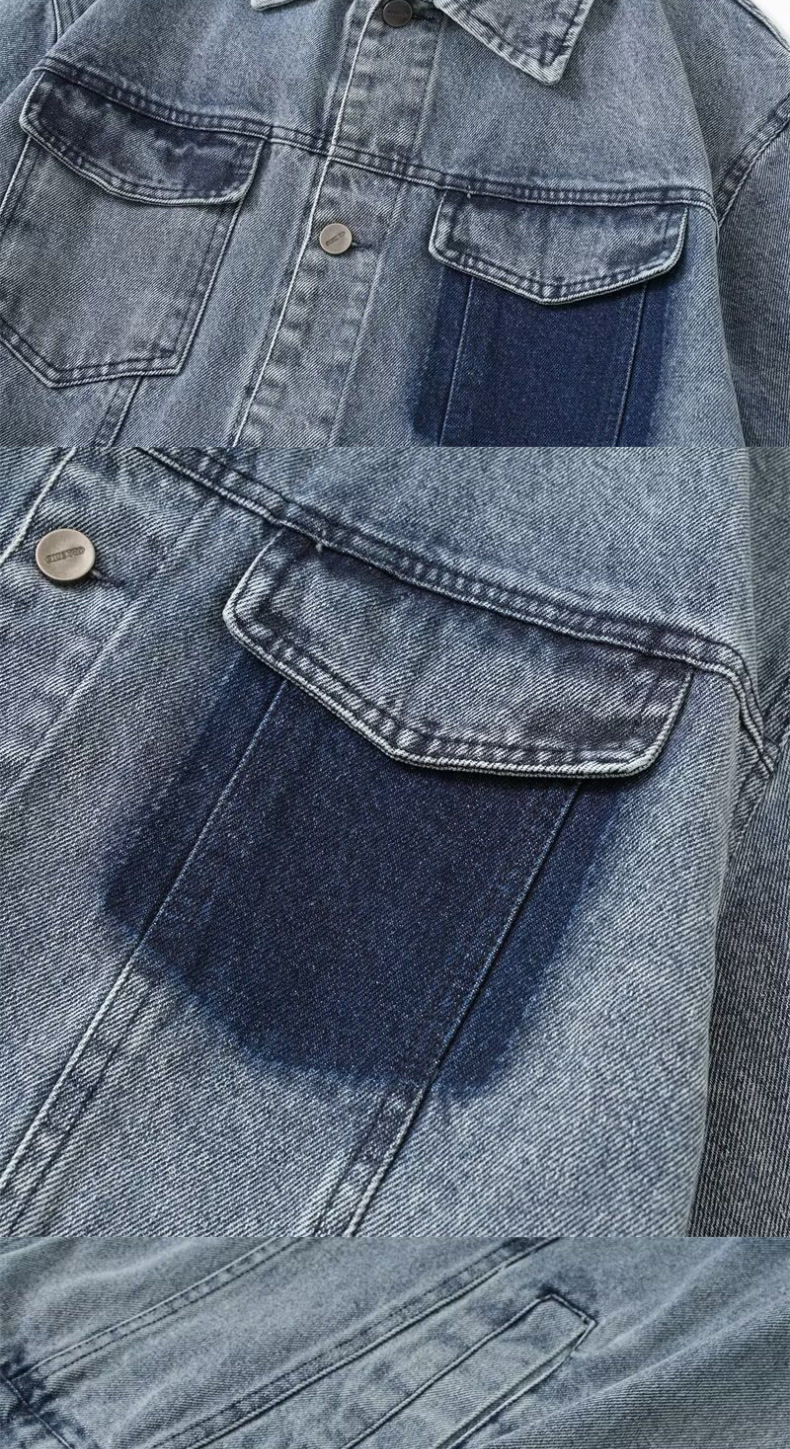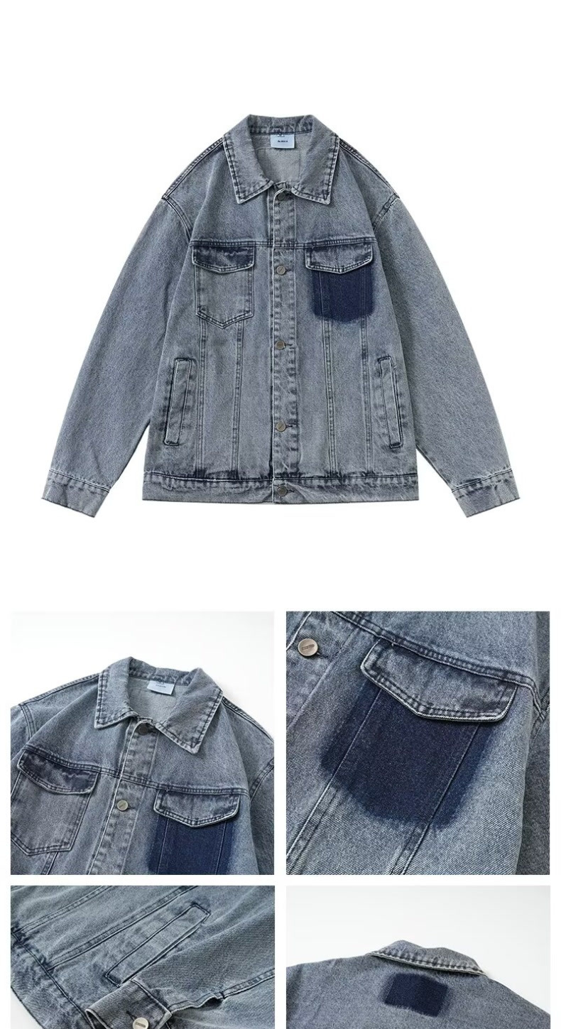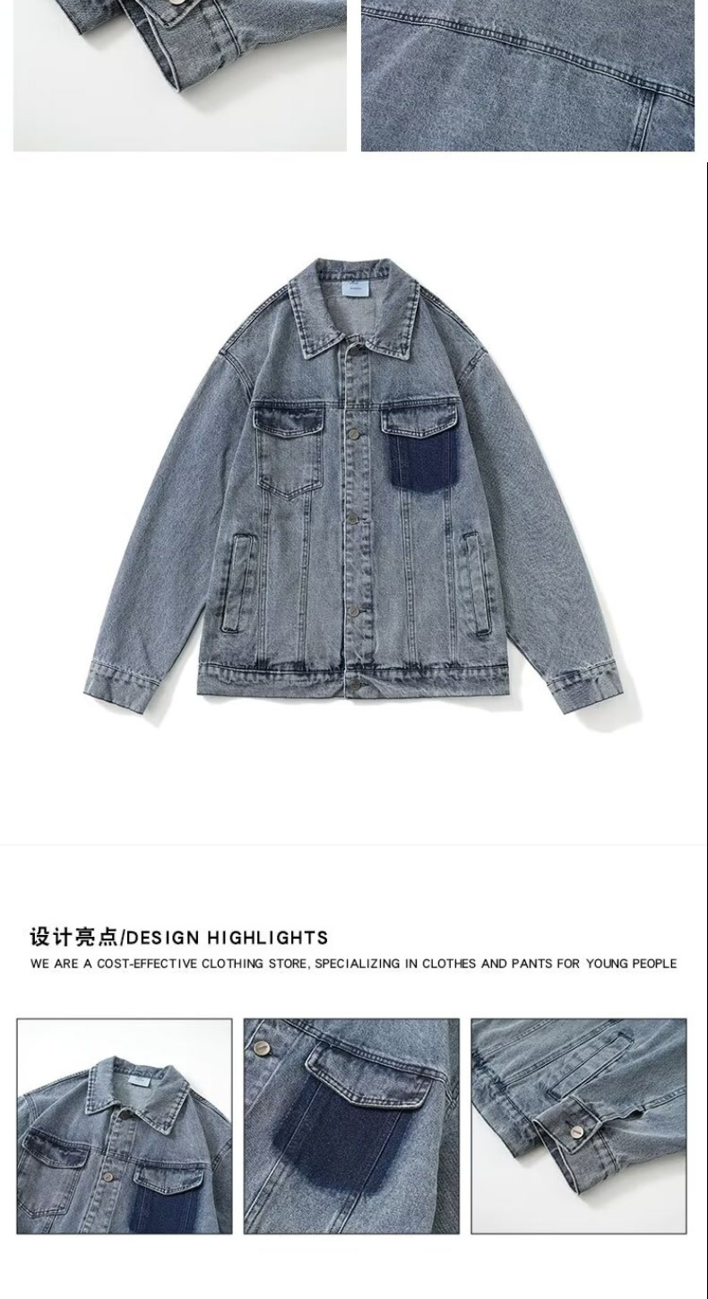 2024 봄과 가을 새로운 명암 컬러 세탁 데님 재킷 남성 일본 패션 브랜드 레트로 캐주얼 루즈 재킷스토어 가기