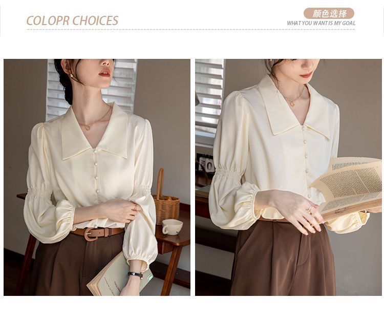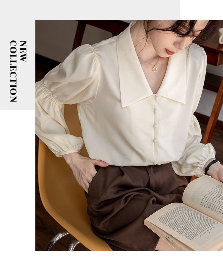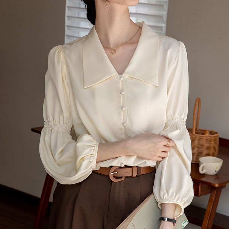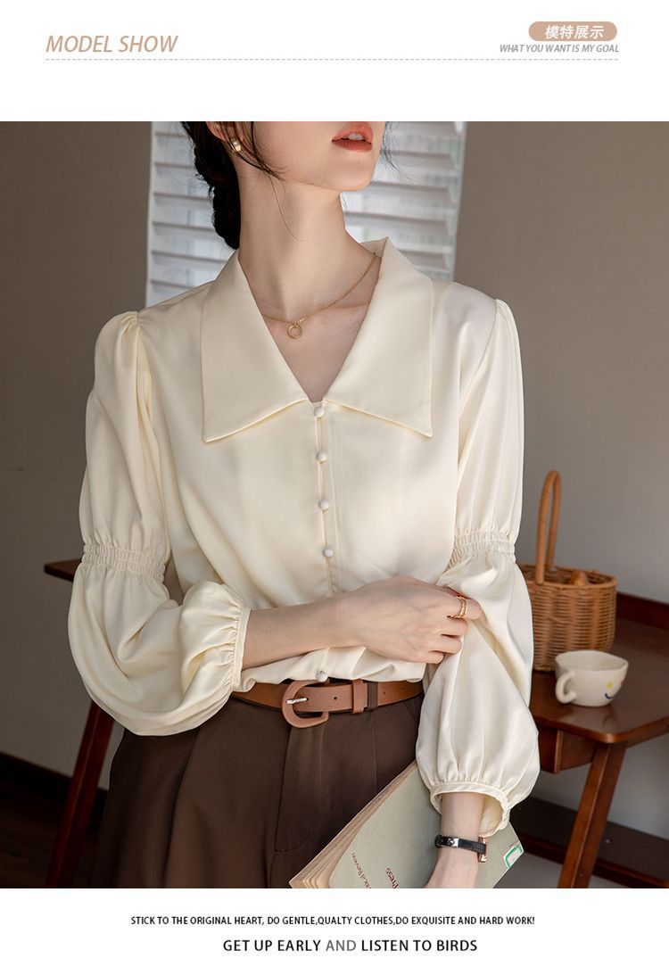 랜턴 슬리브 살구색 셔츠 여성용 봄과 가을 디자인 센스 니쉬 프렌치 레트로 셔츠 전문 통근 원피스 탑스토어 가기