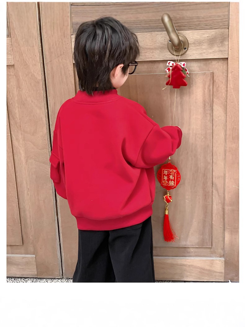 소년 기모 땀 겨울 2024 새로운 어린이 가을과 겨울 레드 중국 스타일 톱 소년의 두꺼운 유행 옷스토어 가기