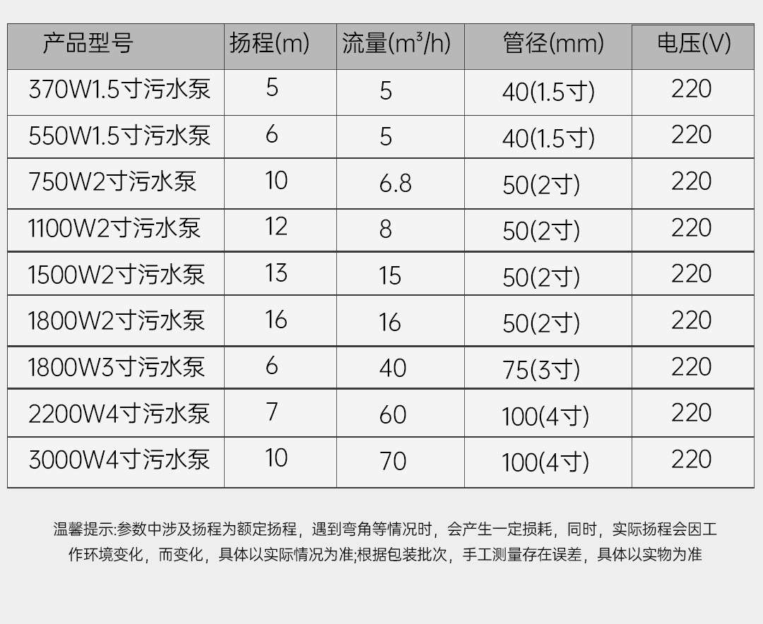 잠수정 펌프 220V 작은 하수 펌프 가정용 물 펌프 높은 리프트 농업 물 펌프 큰 흐름 관개 하수
