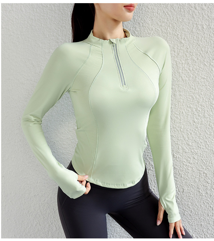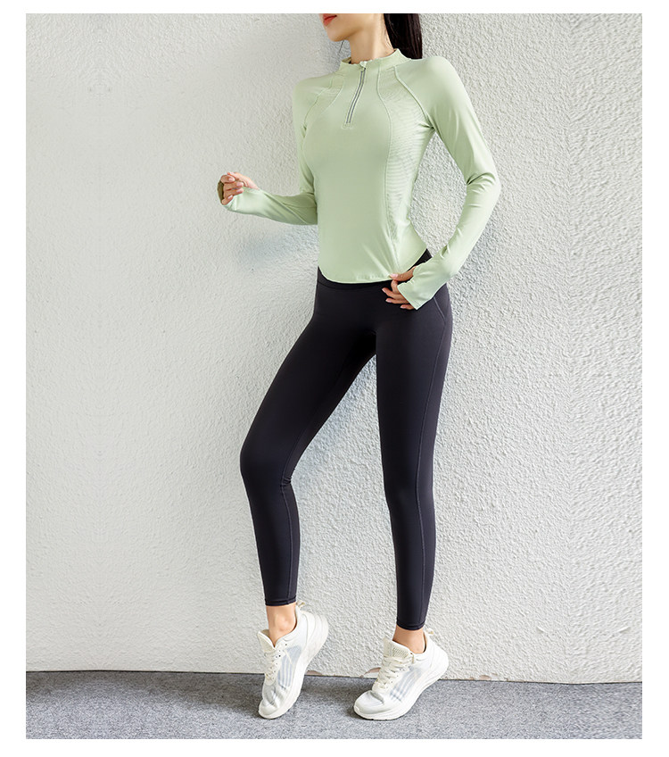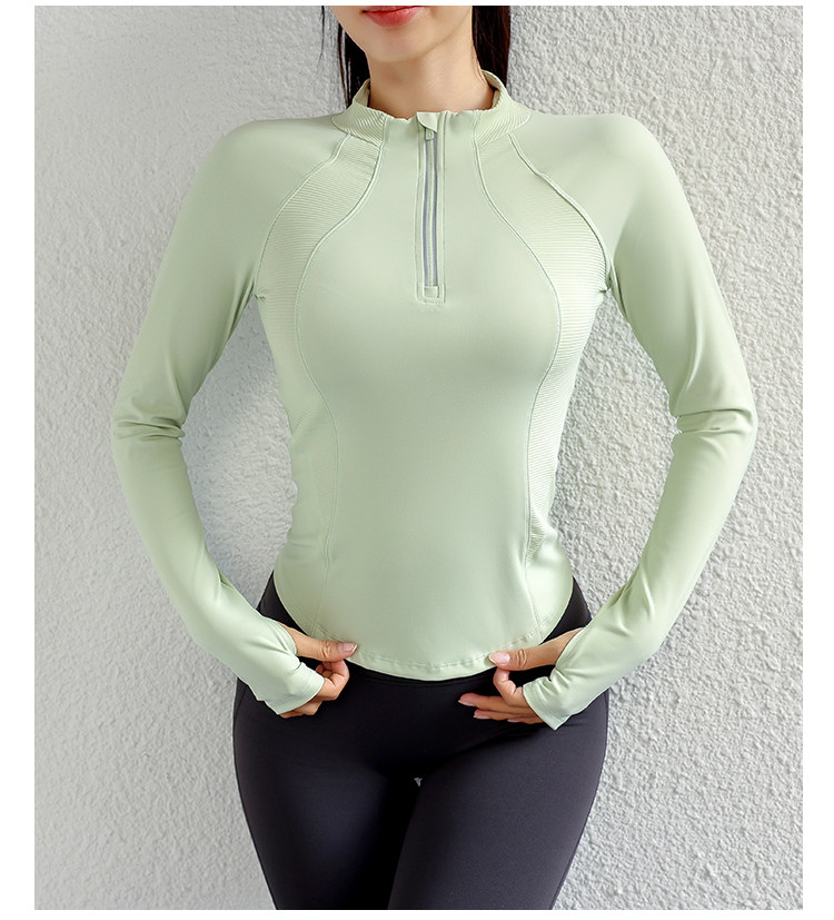 LulYoga 반사 하프 Zip 요가 세트 여성 달리기 훈련 피트니스 세트 엄지 구멍 높은 탄성 스포츠 탑스토어 가기