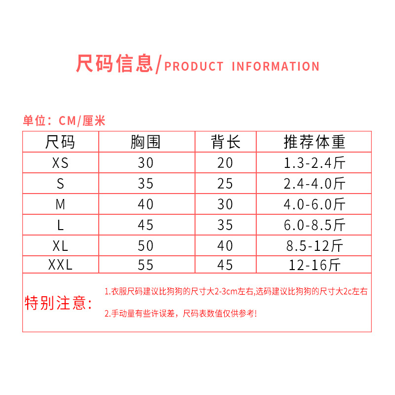 • XL (가슴둘레 50CM, 권장체중 4.2-6kg )