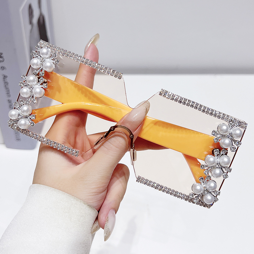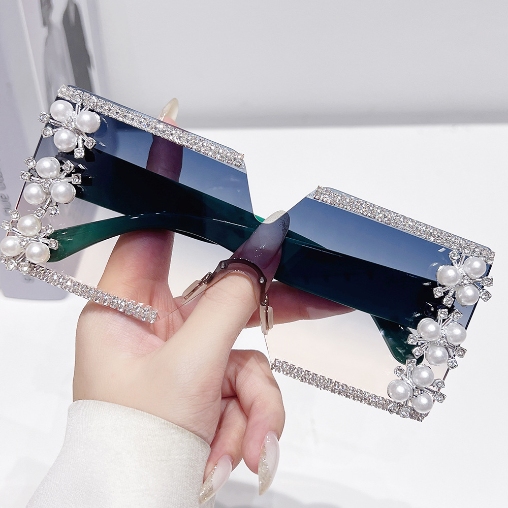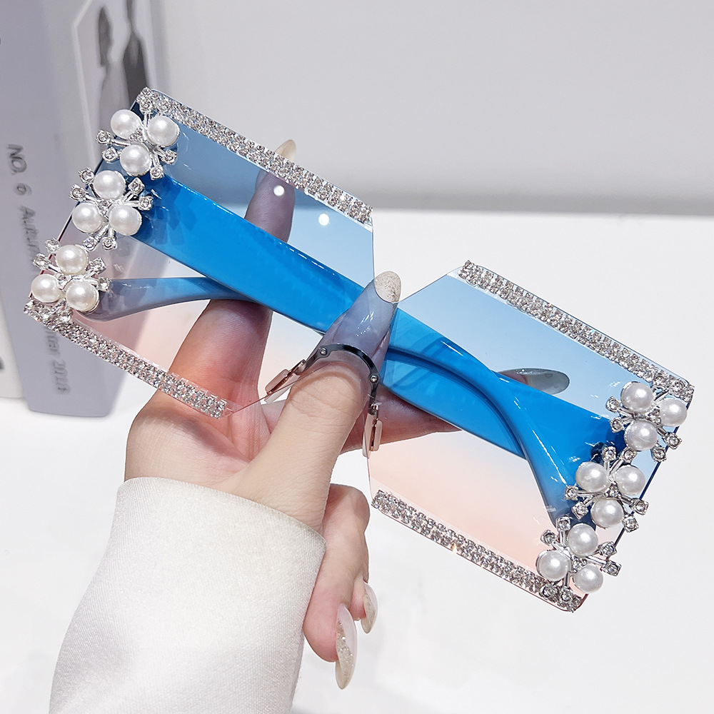 새로운 프레임없는 관대 한 프레임 맞춤형 파티 선글라스 INS 국경 도매 다이아몬드 선글라스