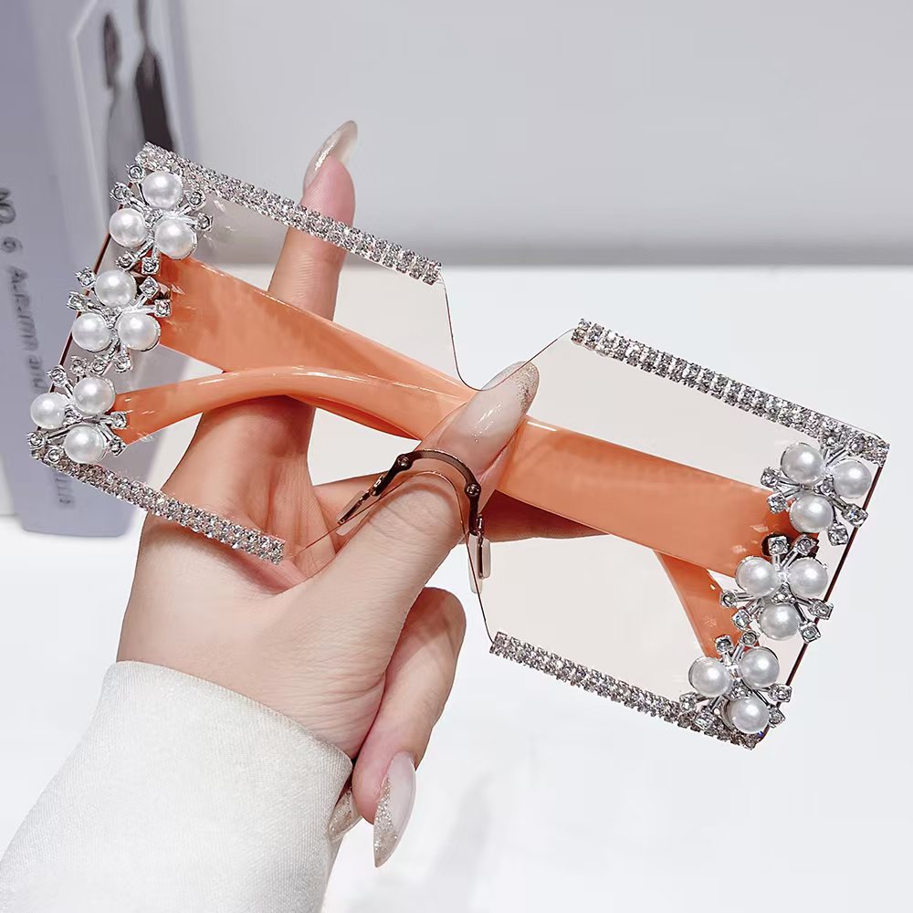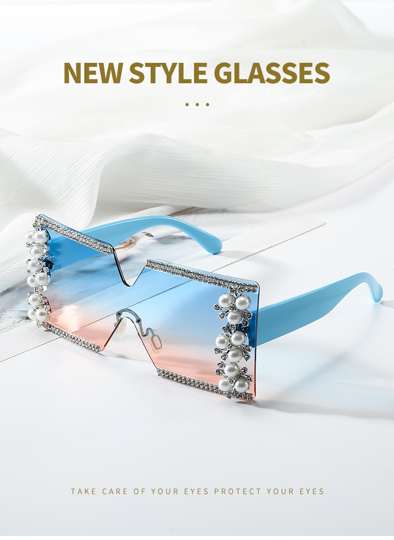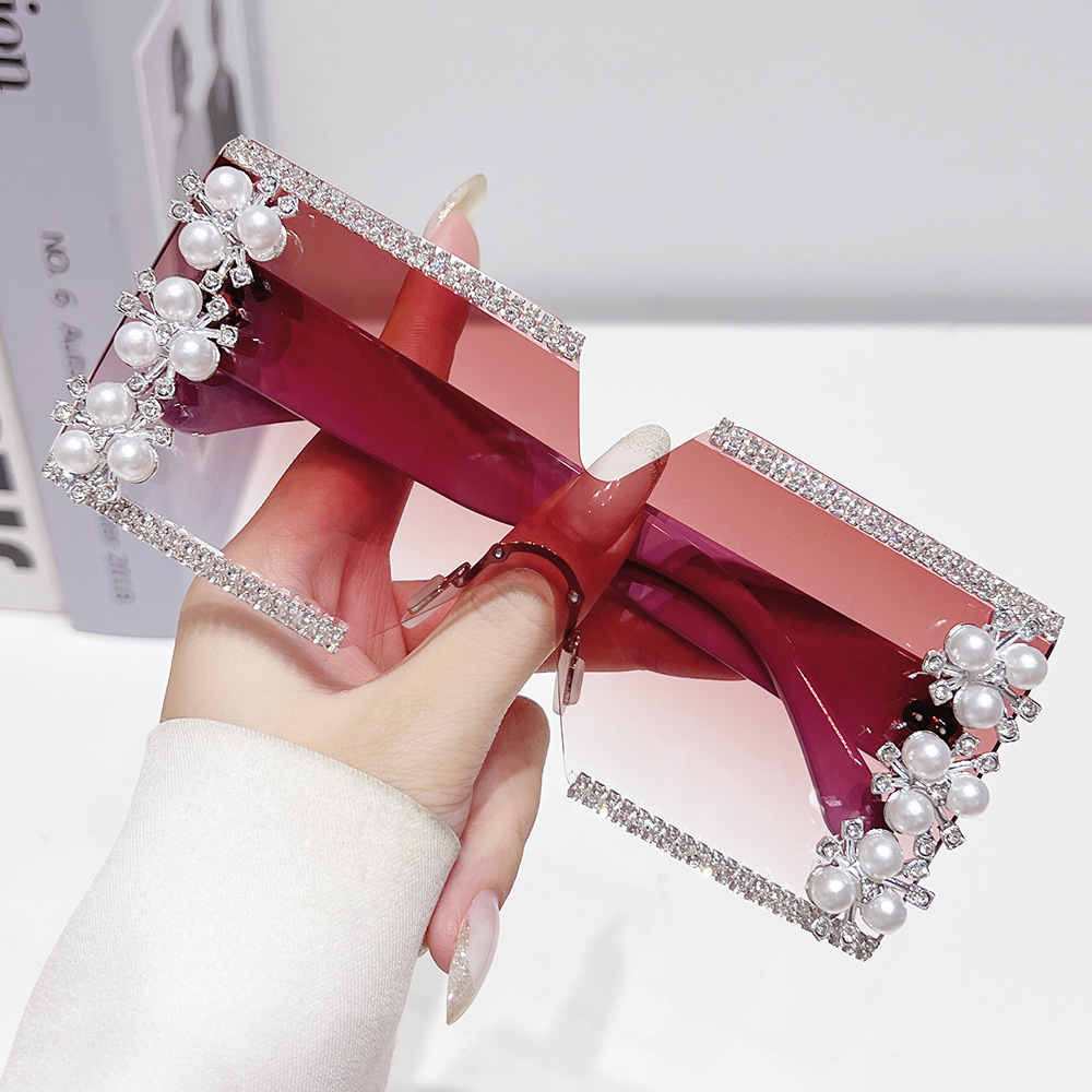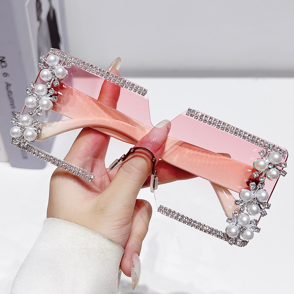 새로운 프레임없는 관대 한 프레임 맞춤형 파티 선글라스 INS 국경 도매 다이아몬드 선글라스